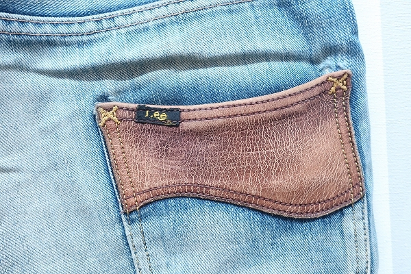 バックポケットのレザーに黒ずみ、ダメージに広がりがございます。