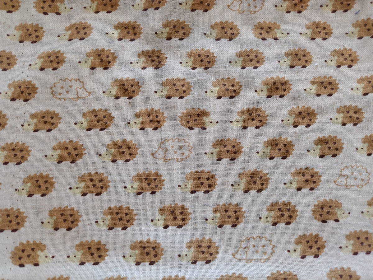 柄は生成り地にたくさんのベージュのハリネズミ。
