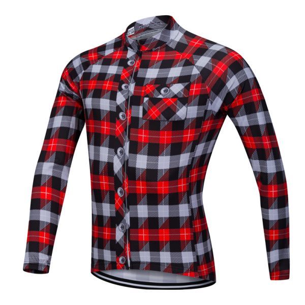 新品 長袖 サイクルジャージ No23 XXLサイズ チェック フルジップ ウェア メンズ ロング サイクリング スポーツ ロードバイク MTB