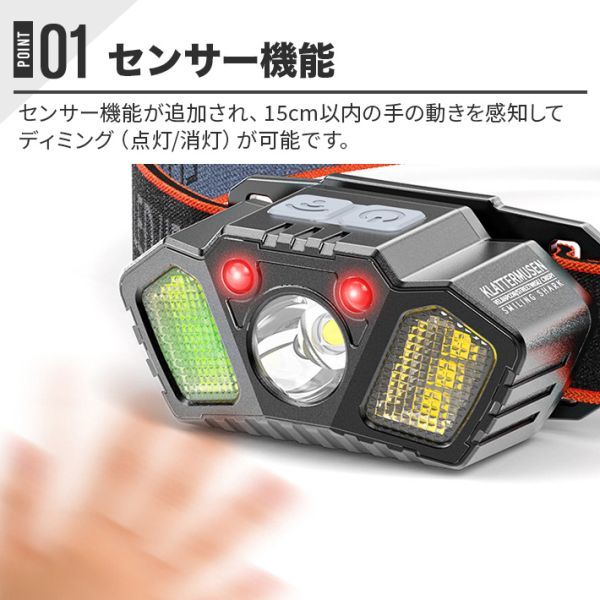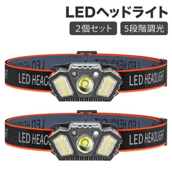 【2個セット 】進化版XPE LEDヘッドライト 充電式ヘッドランプ センサー機能5段階調光SOS機能 800ルーメンiPX67 防水 52g 充電インジケータ
