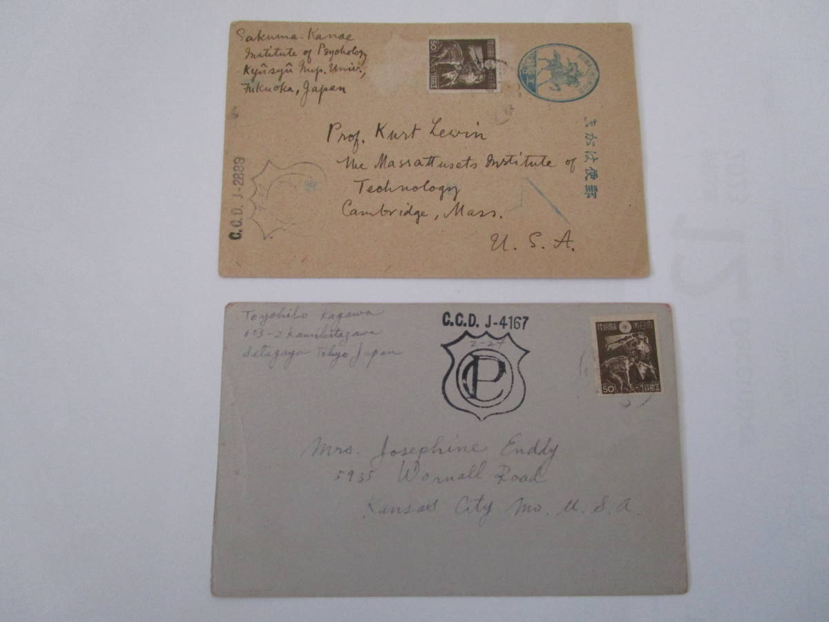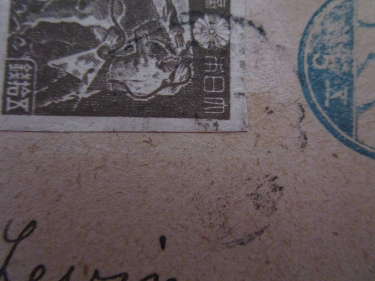 1、大型楠公5銭はがき(料金無視)に加貼櫛型印福岡21・9・23・福岡県消(画像3参照)→東京検閲C・C・D・Jー2889・9ー27(9月27日