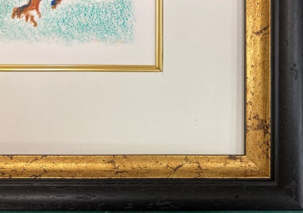 制作年=【  1947年  】/タイトル=【  LAPIN AZIR  】/版元=【 ATELIER D.JACOMET 】/版画紙=【 VELIN D'ARCHES 】/イメージサイズ=【 260X150 】/新品オーダー高級金箔額装(虫食い装飾ブラック)サイズ=【 440X330 】/状態=大変良好【 ミントコンディション 】/送料=無料【 ヤフネコ宅急便 】