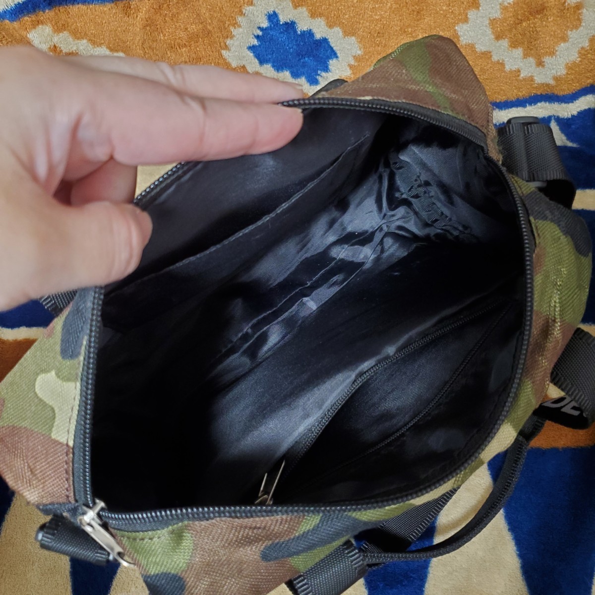 引っ掛けて生地が薄くなってるところもありますが、裏地があるので中はキレイです