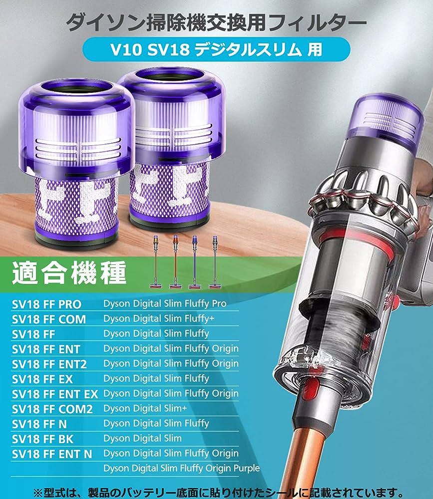 【対応機種】ダイソン 掃除機 SV18 digitialスリム 用: Digital Slim Fluffy Origin (SV18 FF ENT) , Digital Slim Fluffy (SV18 FF) , Digital Slim Fluffy+ (SV18 FF COM) , Digital Slim Fluffy Pro (SV18 FF PRO) ,Digital Slim Fluffy Origin (SV18 FF ENT2) ,Digital Slim Fluffy (SV18 FF EX) ,Digital Slim Fluffy Origin (SV18 FF ENT EX) , Digital Slim+ (SV18 FF COM2) , Digital Slim Fluffy (SV18 FF N) , Digital Slim (Black, SV18 FF BK) , Digital Slim Fluffy Origin (SV18 FF ENT N) , Digital Slim Fluffy Origin Purple