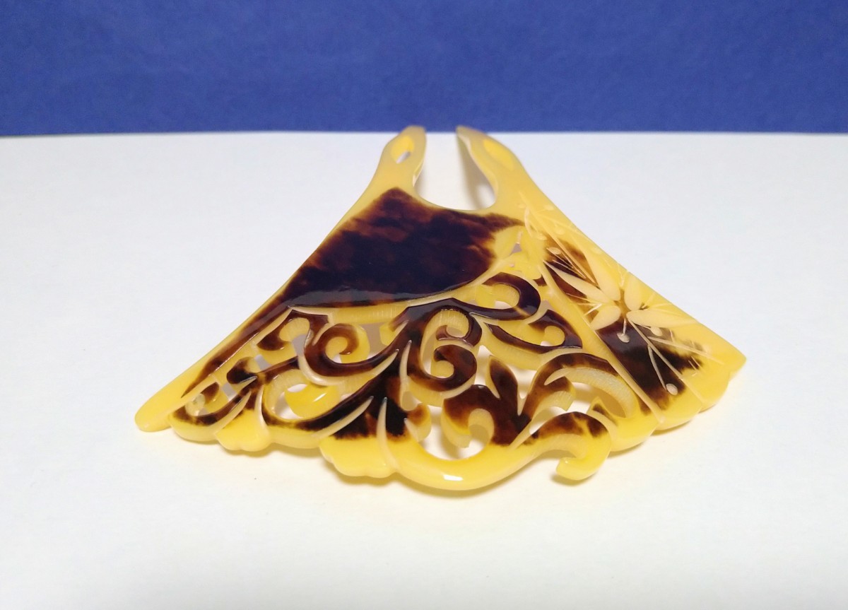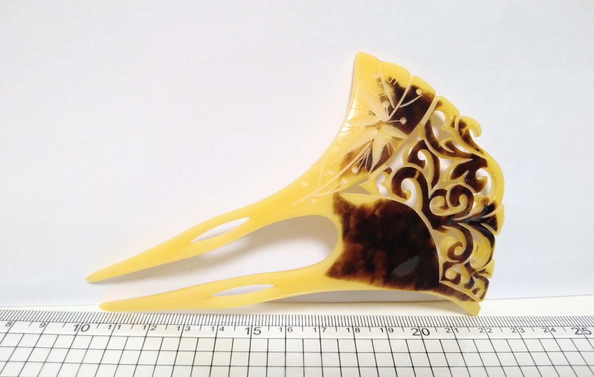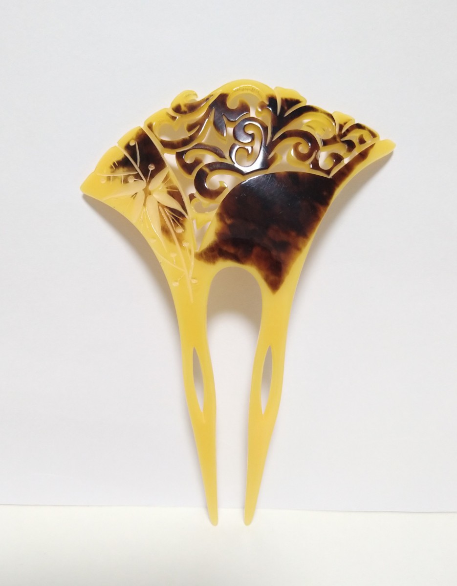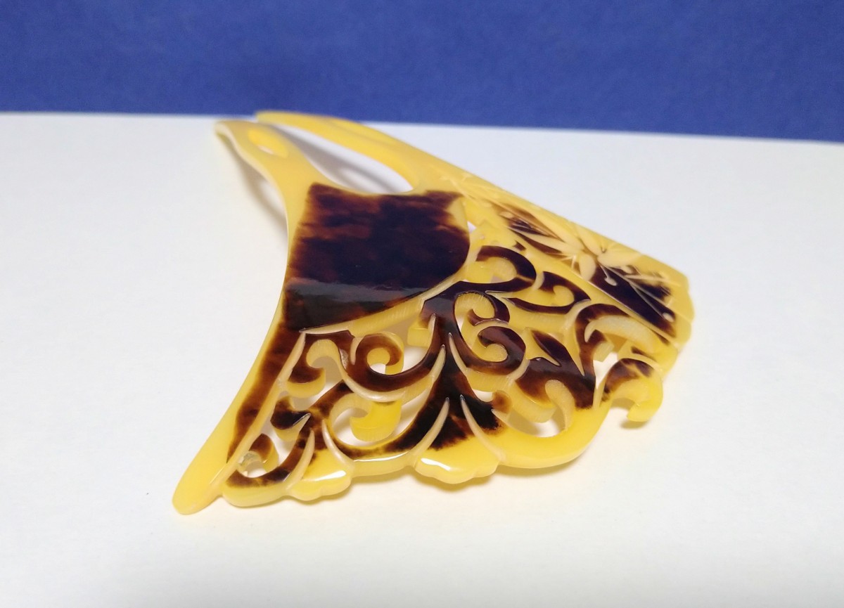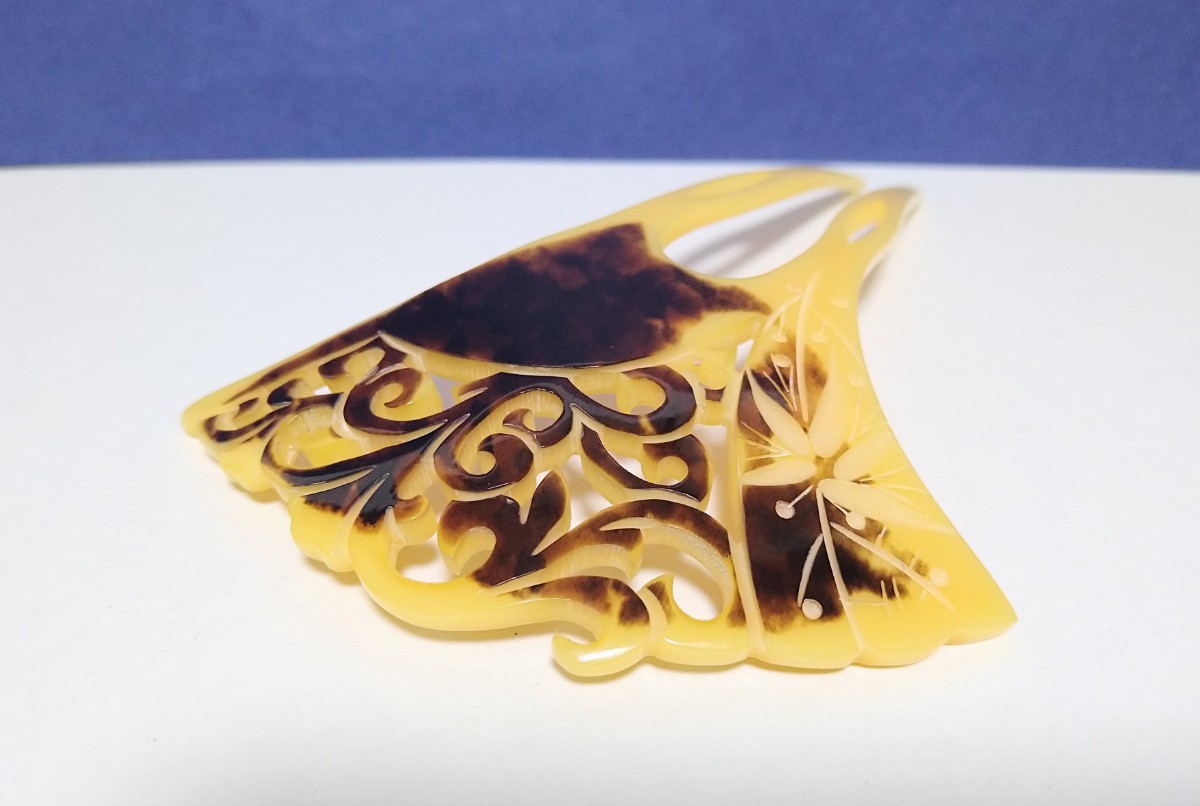 δ 本鼈甲張り 唐草透かし細工 簪 δ べっ甲張り 装小物 かんざし 鼈甲
