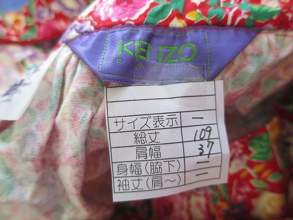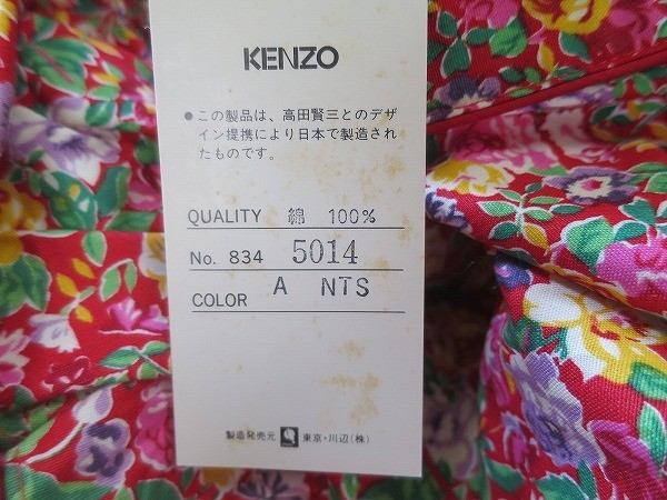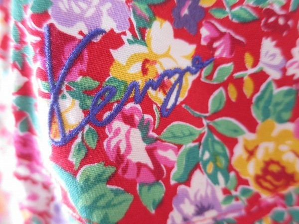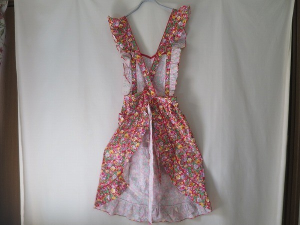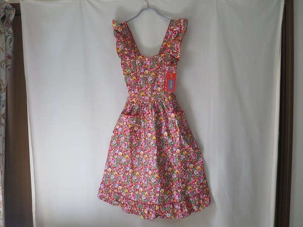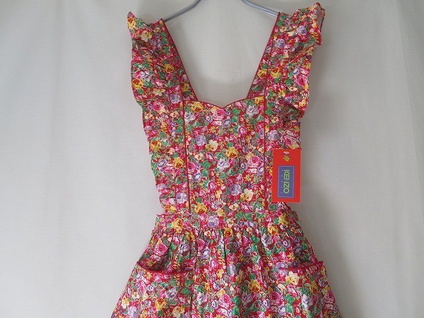 未使用タグ付 ケンゾー 型フリル薔薇柄KENZO エプロン赤系 高田賢三