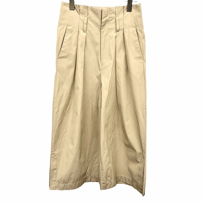 商品タイトル | ナノユニバース nano・universe ワイドパンツ 薄手 裾スリット 2タック 無地 サンプル品 非売品 ポリ×綿 ベージュ レディース |