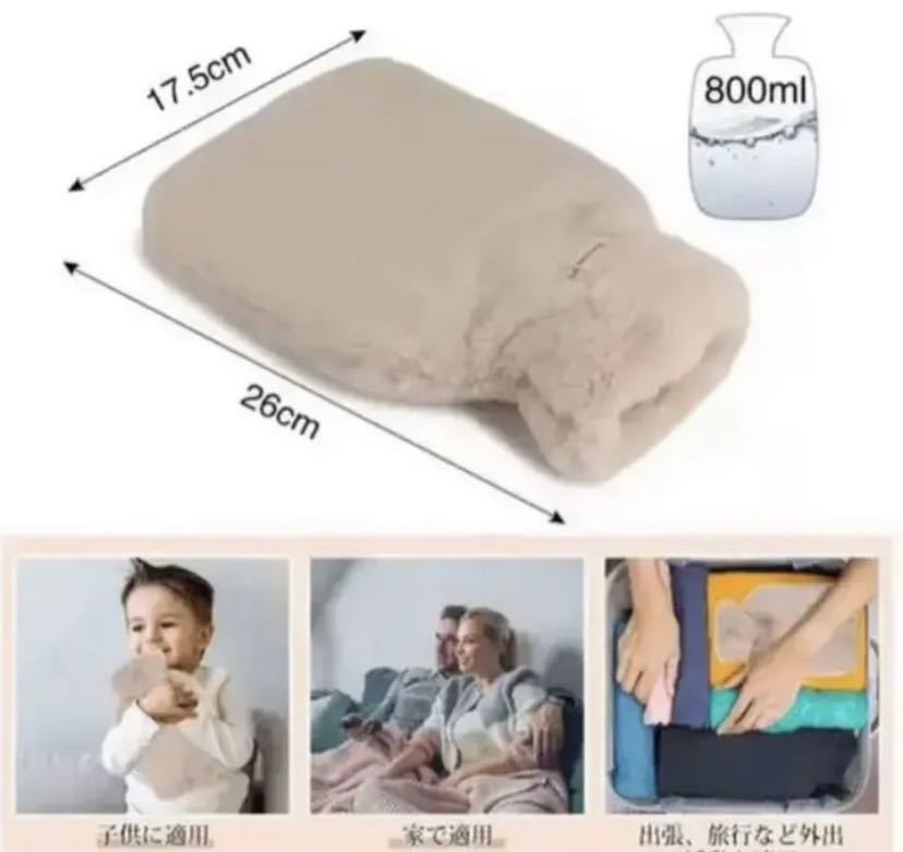 【安全素材】湯袋のインナーライナーは安全で柔らかいPVC素材を採用しています。表地にはイミテーションラビットファー素材を使用しており、肌に優しく柔らかな肌触りです。 電気を使う必要がないので、火事になる心配はありません。暖かな冬を体験させてあげてください。