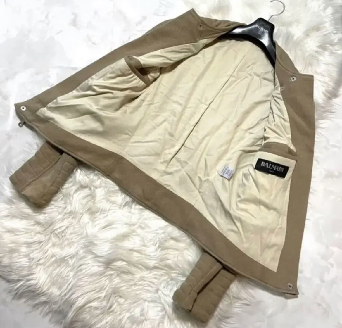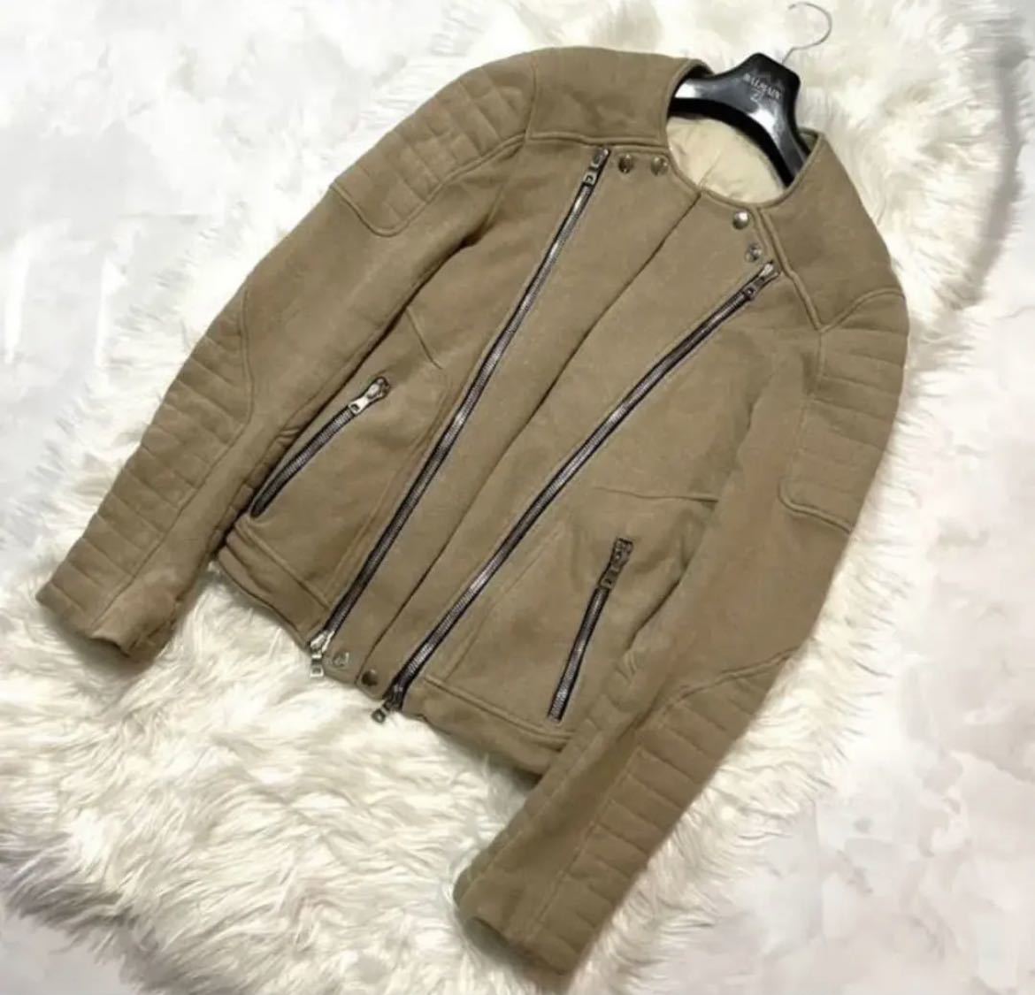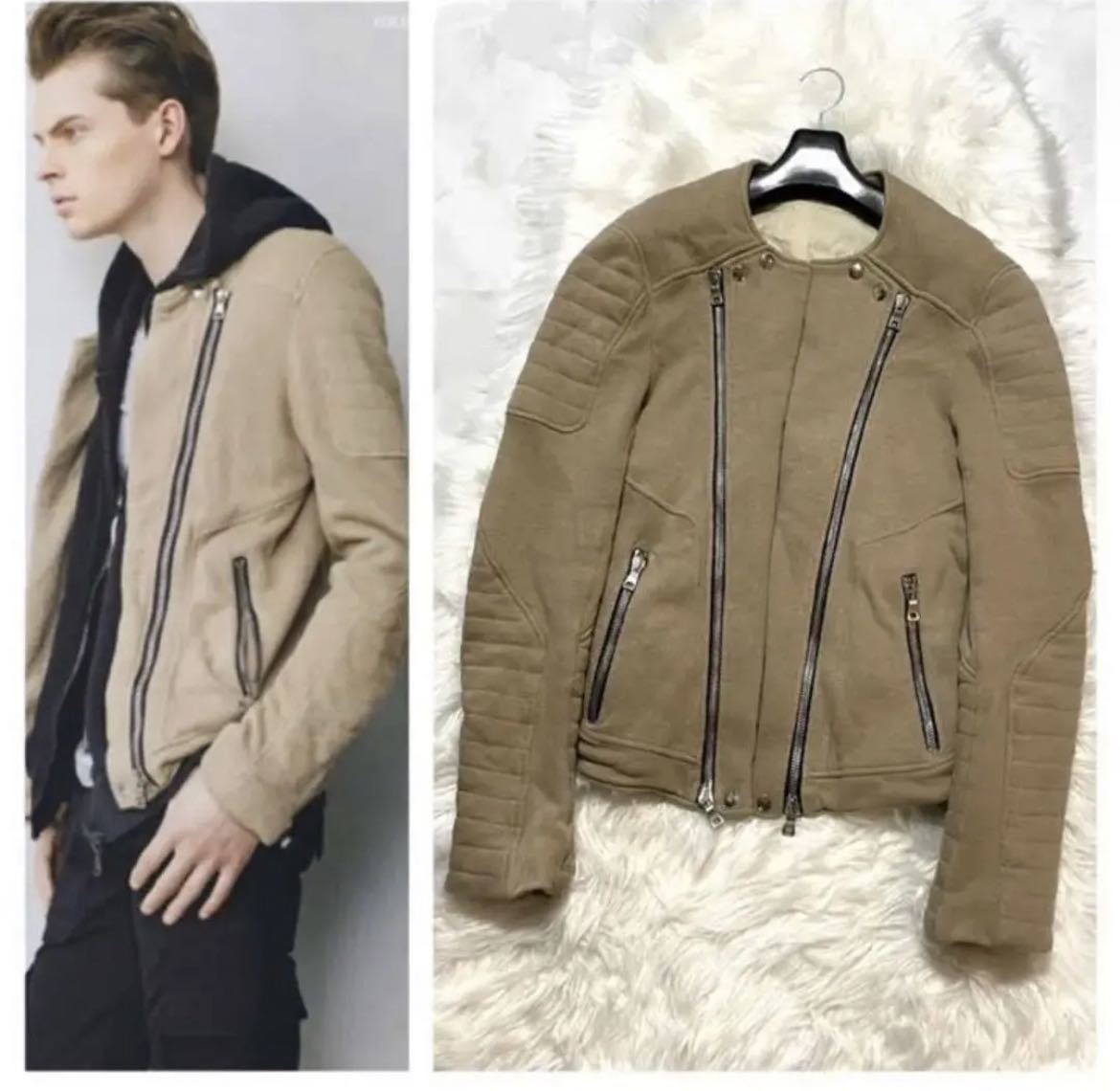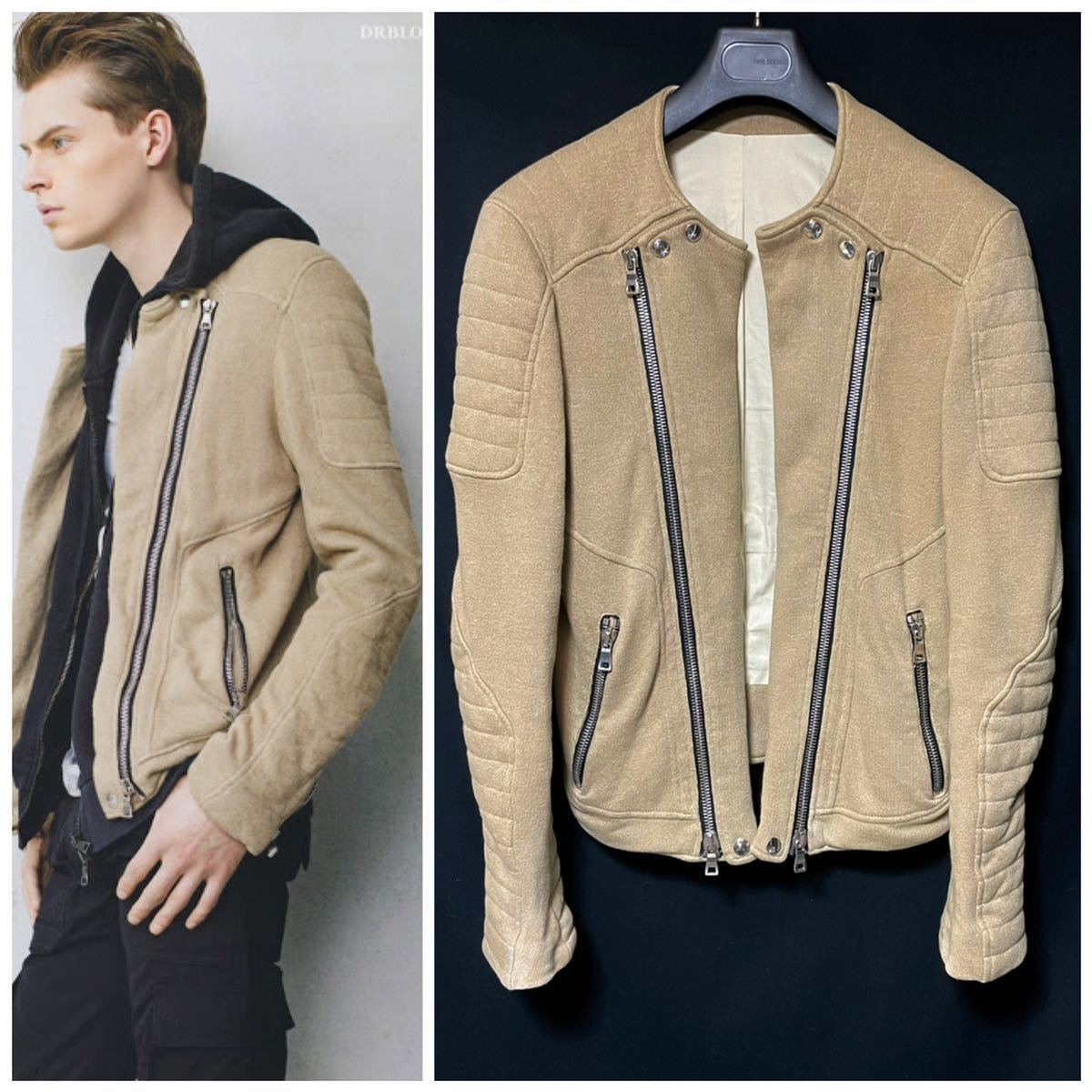 | 本物 雑誌掲載モデル バルマンオム バイカー スウェット ライダースジャケット S ベージュBALMAIN HOMME コレクションモデル | |||