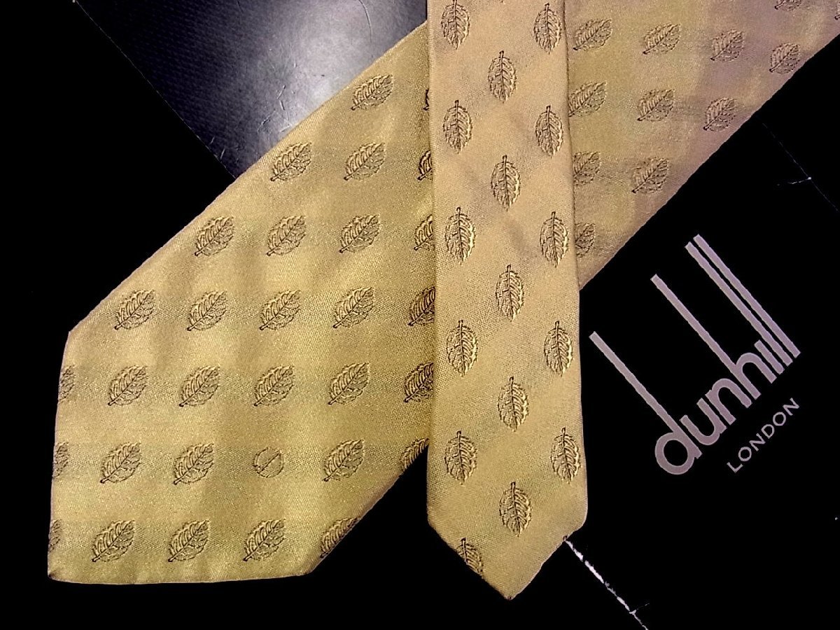 ♪今週の特売980円~♪1343♪状態並品【dunhill】ダンヒル【葉っぱ 植物 dロゴ 柄】ネクタイ♪