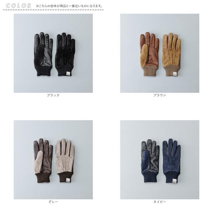 商品説明 | ・・羊革とピッグスキンを組み合わせた、異素材デザインのグローブ。 ・手首まわりはリブニット切り替えでフィットさせ、風を通しにくく防寒性もアップ。 ・裏地にはマイクロボアを使用し、保温性も抜群。掌側親指と人差し指にはタッチパネル操作可能な、導電革を使用。 |