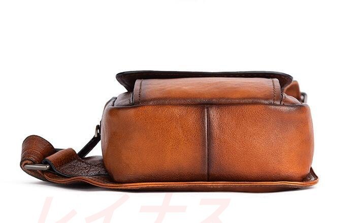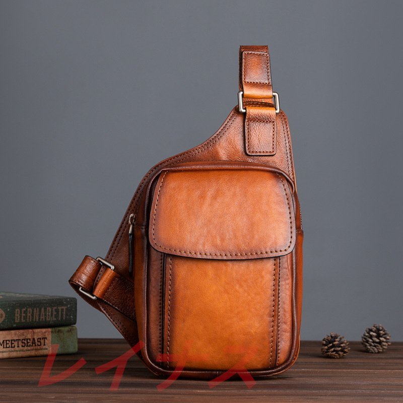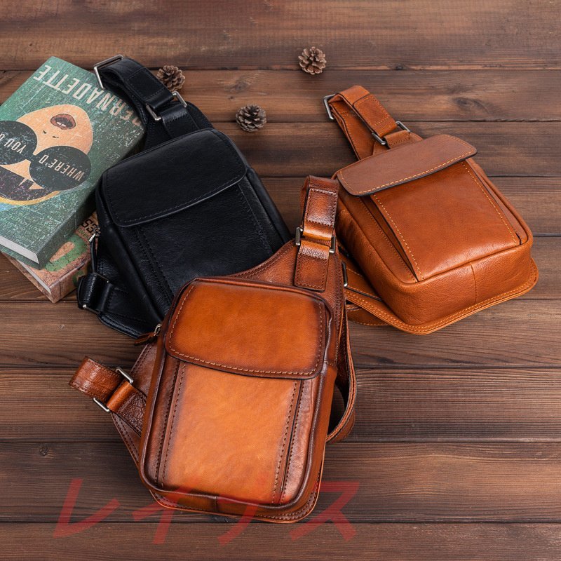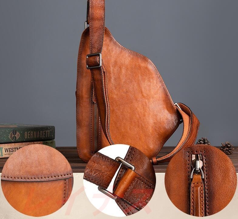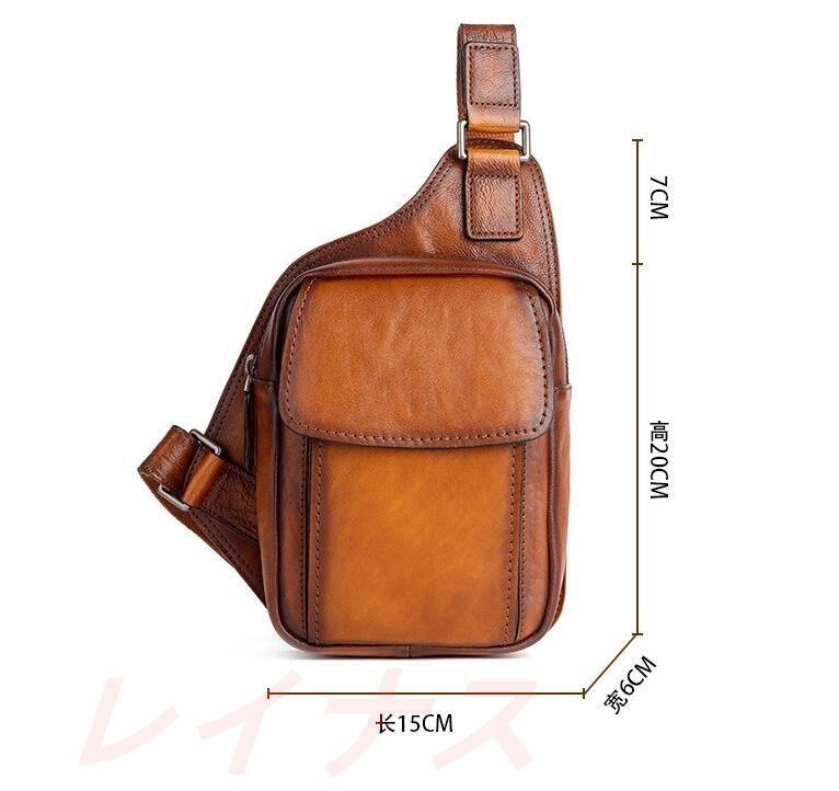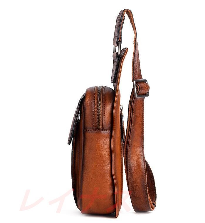 派手本革 メンズ ボディバッグ ヌメ革 牛革 レザー ワンショルダーバッグ 左右肩掛け替え 自転車 鞄 ブラウン