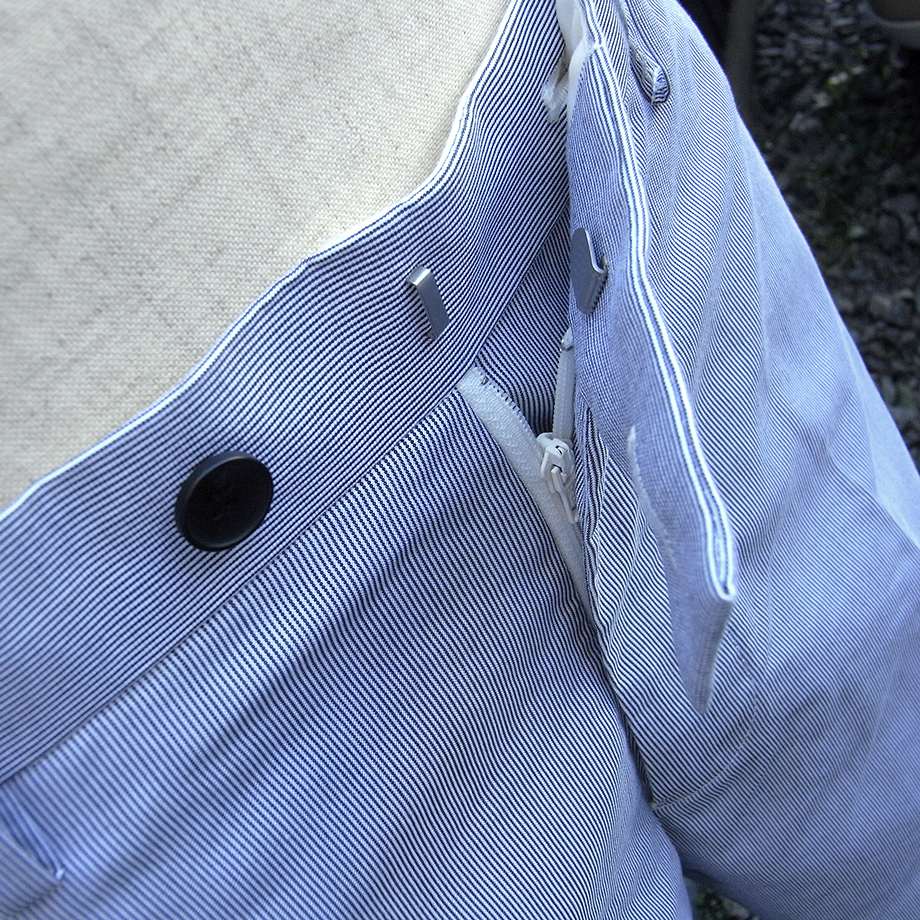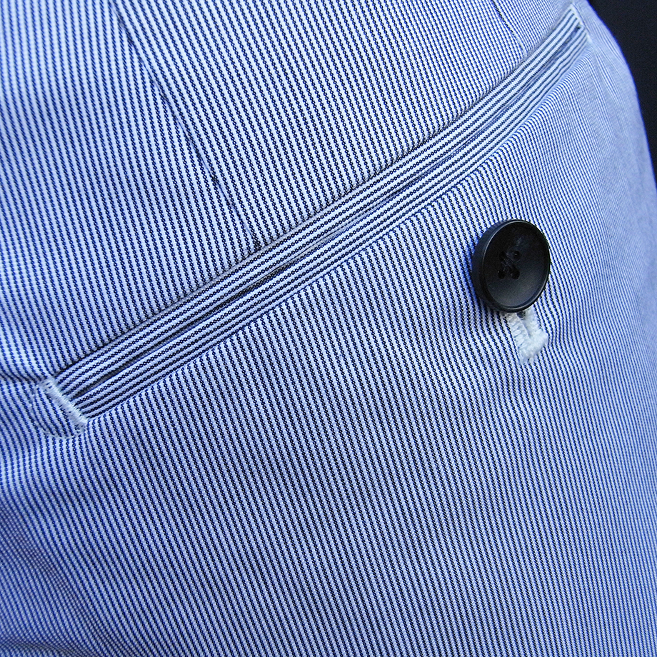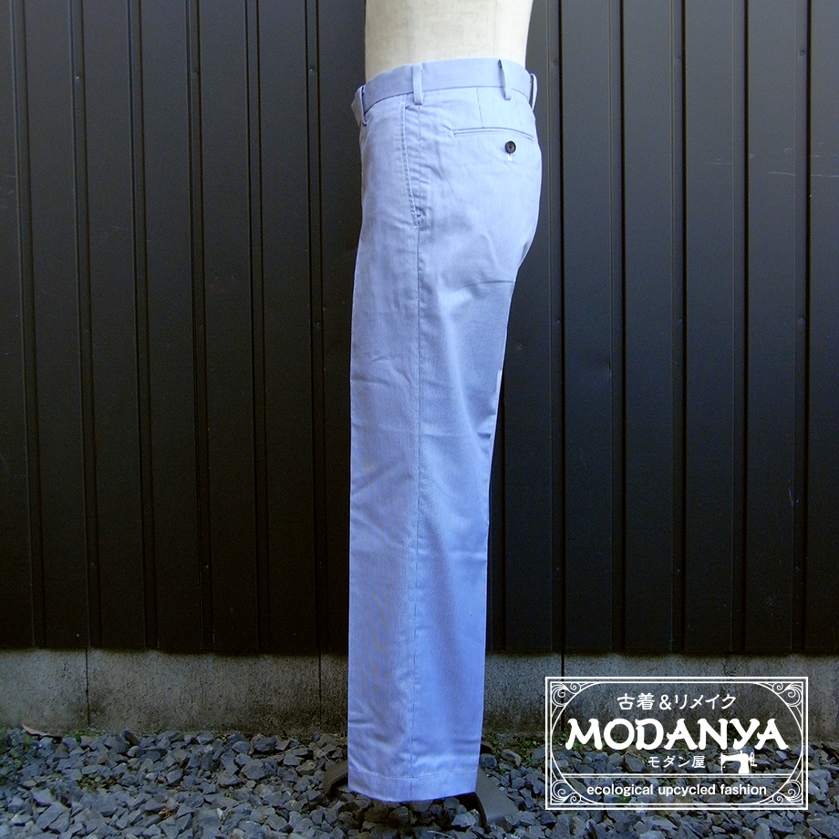 ユニクロの細かいグレー系ストライプの綿パン・パンツ・スラックスです。