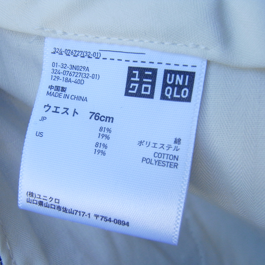 サイズ:ウエスト82cm、ヒップ100cm、ワタリ幅29cm、裾幅19.5cm、股下66cm、股上26cm