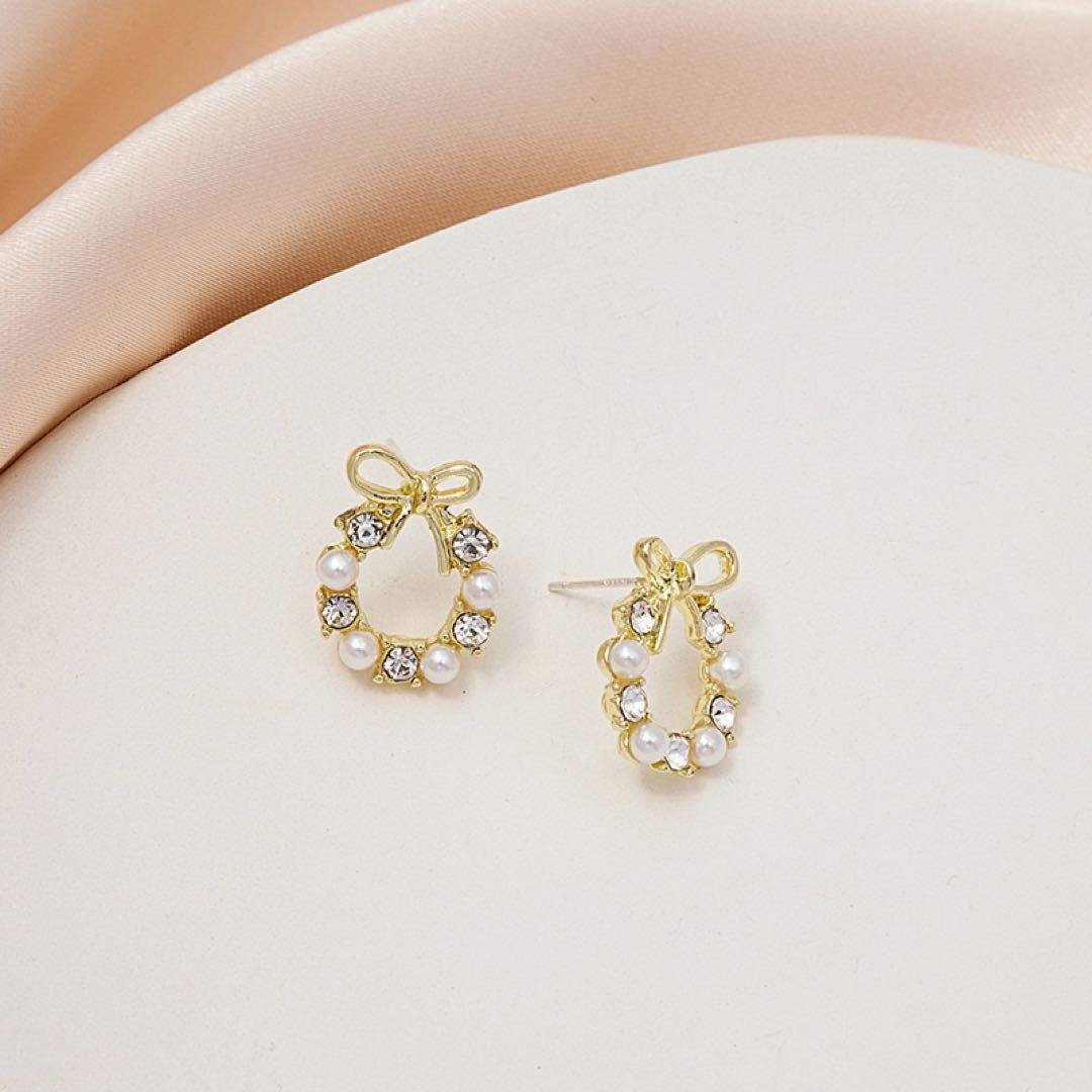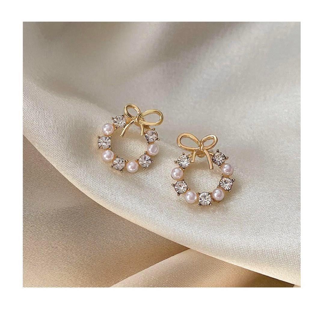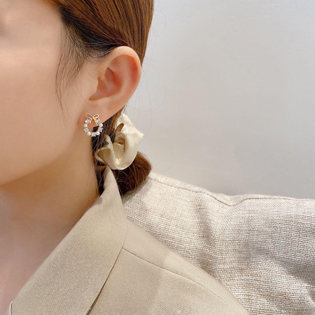 新品 リースピアス レディース リボンピアス シルバー925 ピアス パールピアス アレルギー対応