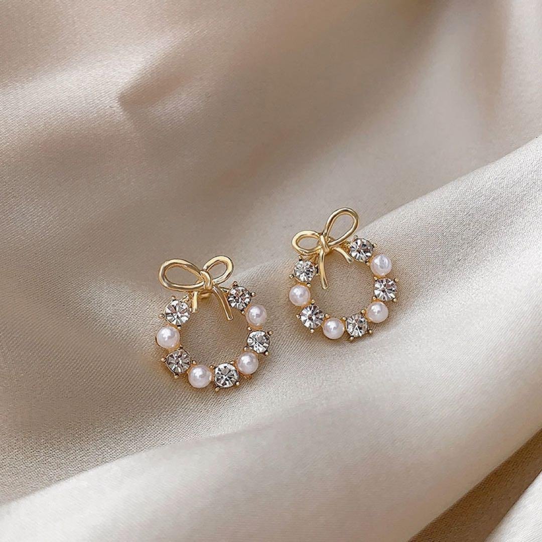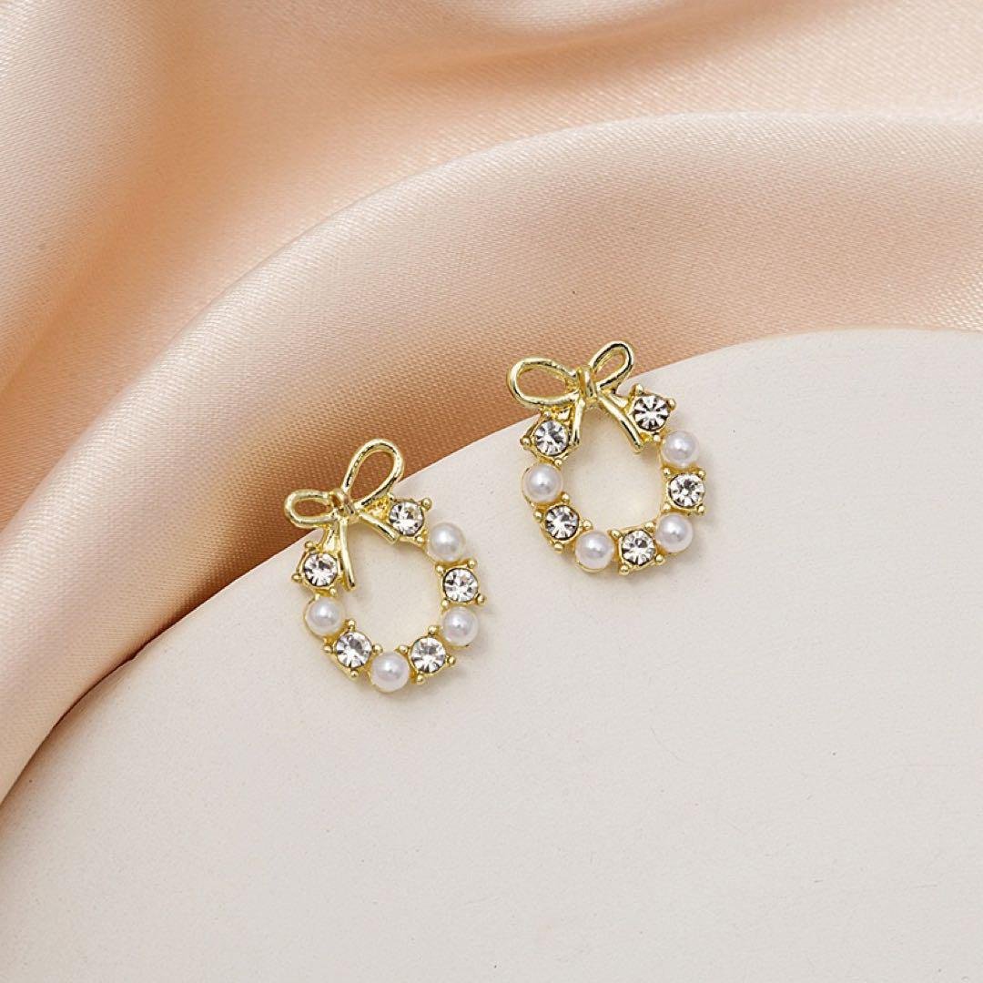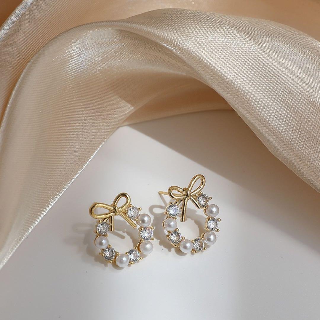 新品 リースピアス レディース リボンピアス シルバー925 ピアス パールピアス アレルギー対応