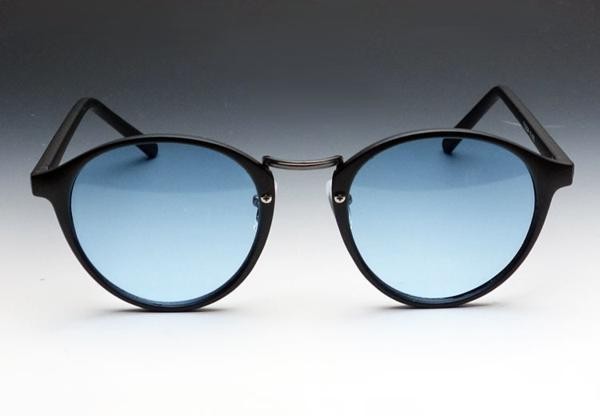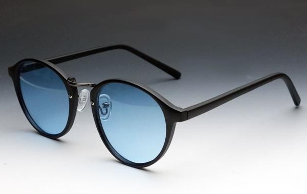 サングラス メンズ レディース 鼻あて ボストン型 ビンテージ 系 UV つや消し黒 マットブラック ブルー