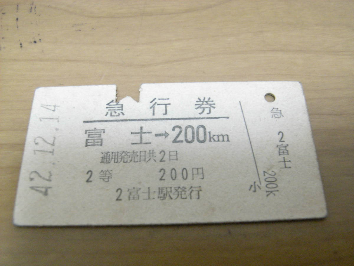 急行券 富士→200km 昭和42年12月14日 富士駅発行