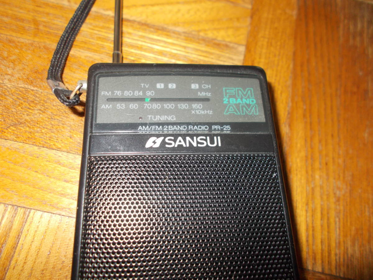 サンスイトランジスターラジオ。動作確認しました。単3x2本仕様。サイズは、≒7x11x3CM中古ですので神経質な方はご遠慮ください。3Nでお願いします。