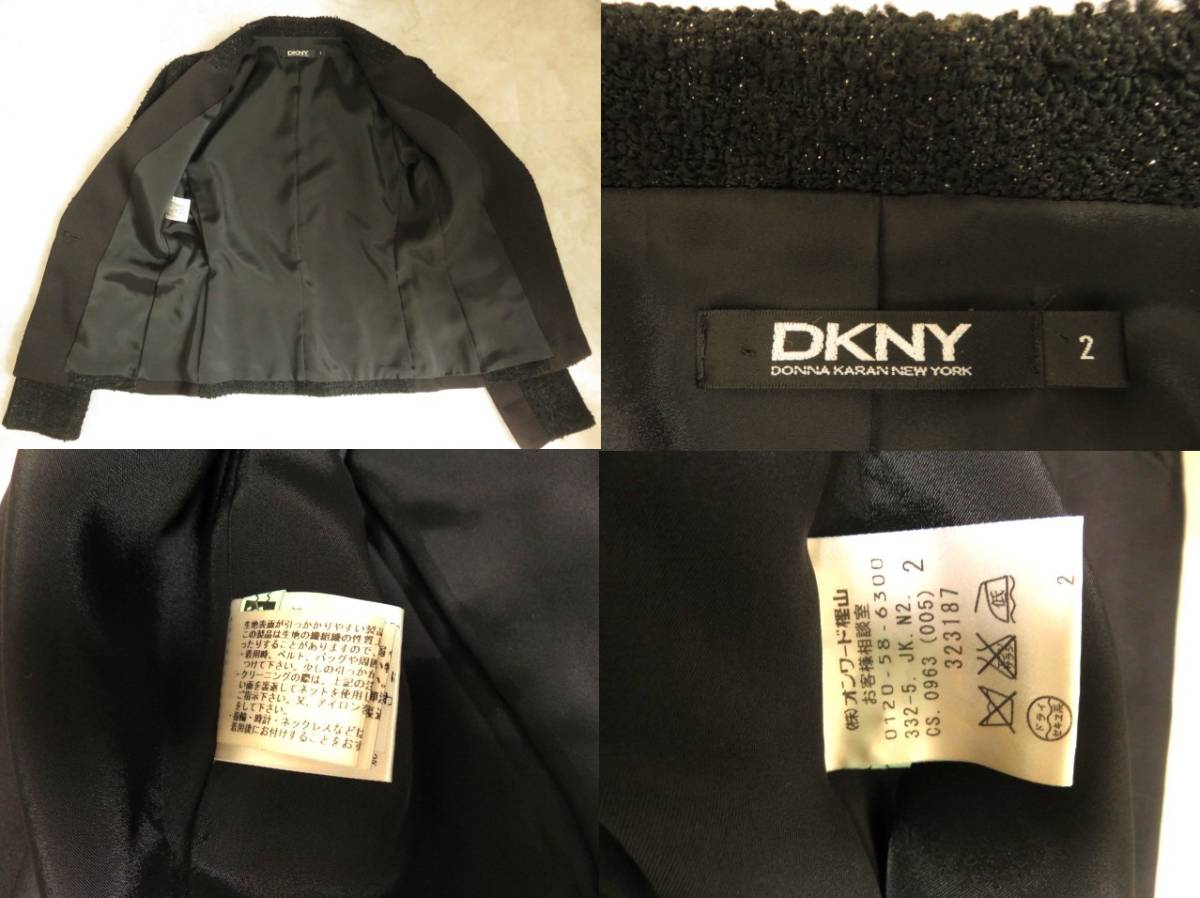 ■上質美品 【DKNY】ダナキャランニューヨーク 高級 ラメ入り ジャケット オンワード樫山 【2】黒 ブラック j1072