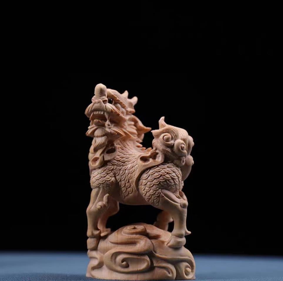 新入荷☆麒麟 木彫り 極細工 開運招福強運風水グッズ 縁起物 贈り物