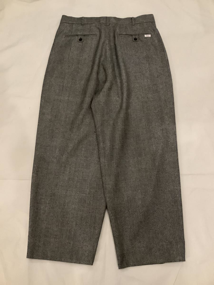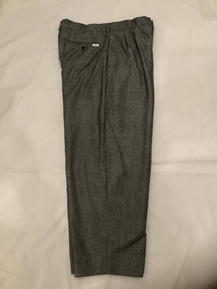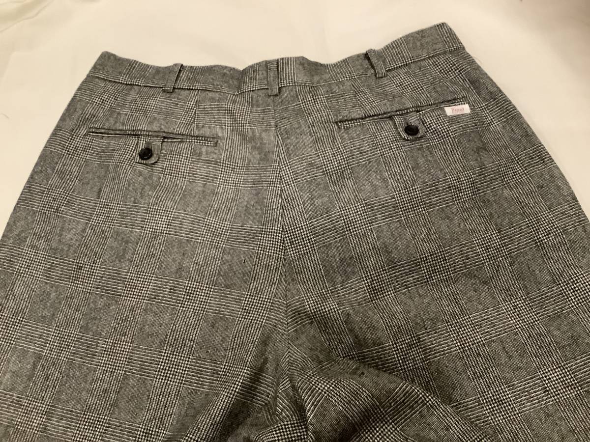 即決 日本製 PAPAS パパス L ウール スラックス タック 2タック WOOL 毛100% 太めゆったり グレンチェック ウールパンツ