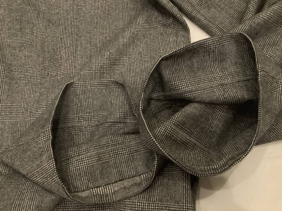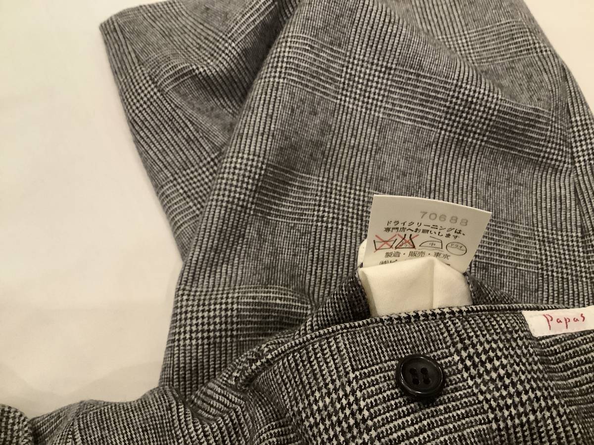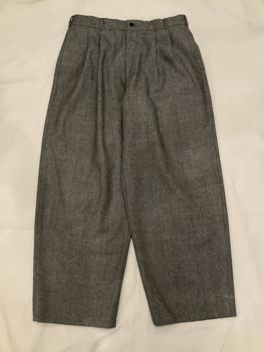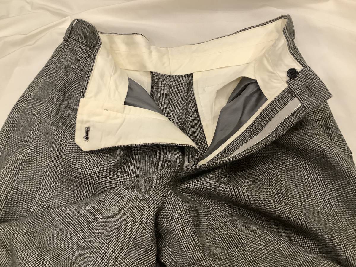即決 日本製 PAPAS パパス L ウール スラックス タック 2タック WOOL 毛100% 太めゆったり グレンチェック ウールパンツ