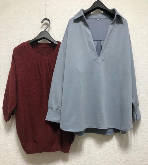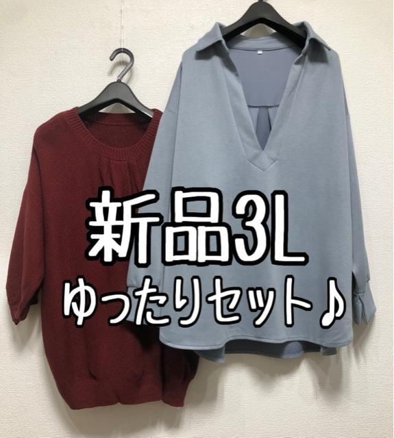 新品☆3L♪ブルー×エンジ系♪ゆったりトップス2枚セット☆w981
