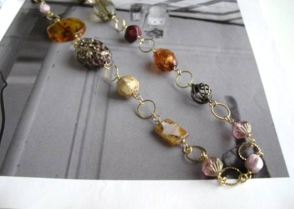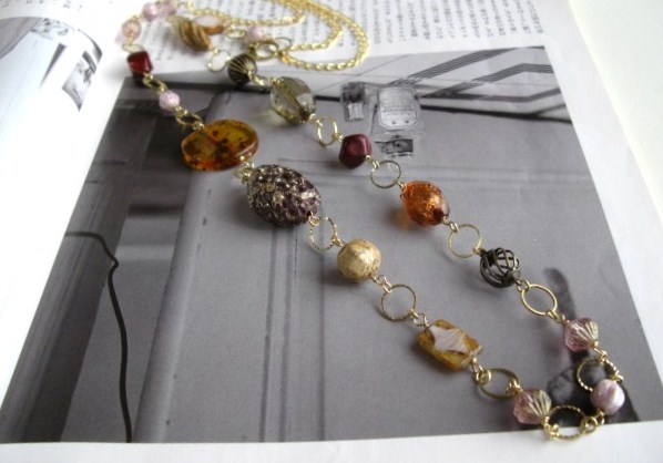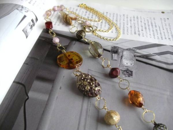 ニューヨーク・テイスト・・シリーズです♪薔薇の香り・・個性的な石を集めたネックレスです♪ピカソジャスパー、樹脂ビーズやチェコビーズ、デザインチャームを合わせてロマンチックな表情です♪アートな模様のピカソジャスパーは12ミリのラウンドカットと10×30ミリのツイストナツメです♪8ミリから36ミリ位までのチェコビーズやイタリアビーズ、樹脂ビーズやデザインメタルを合わせました♪長さは全長107センチ位で調節自由です♪2連にされても素敵です♪お揃いのネックレスやブレスレットも出品しています♪♪シンプルで長く着けていただけるデザインを考えて作りました♪ハンドメイドをご理解頂いてノークレーム、ノーリターンでお願いします