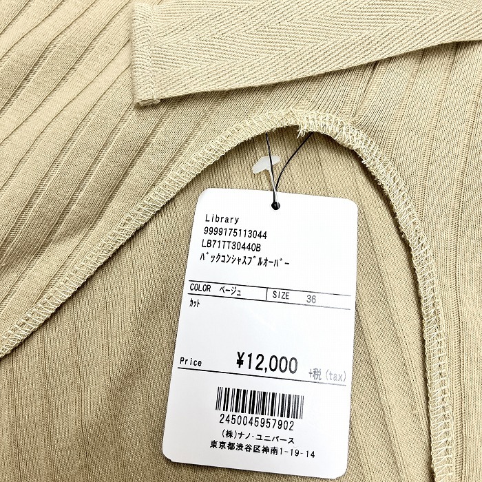 | 商品タイトル | 【新品】nano・universe LIBRARY バックコンシャス プルオーバー リブストライプ カットソー 長袖 ポリ×綿 36 ベージュ レディース |