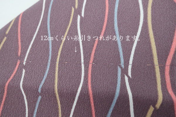 | 【裏地】Bランク 垂れ先から90㎝~100㎝の所に2か所糸引きつれがあります。着用時は目立ちません。 |