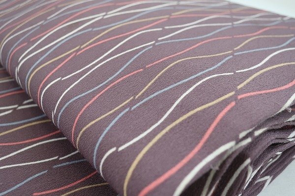 紫色の縮緬地に立涌柄が描かれた名古屋帯です。 ※未使用品です。 担当:伊藤 |