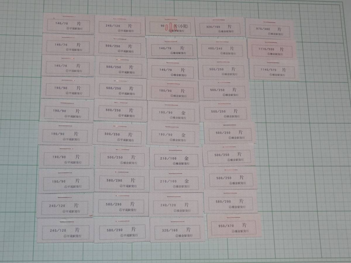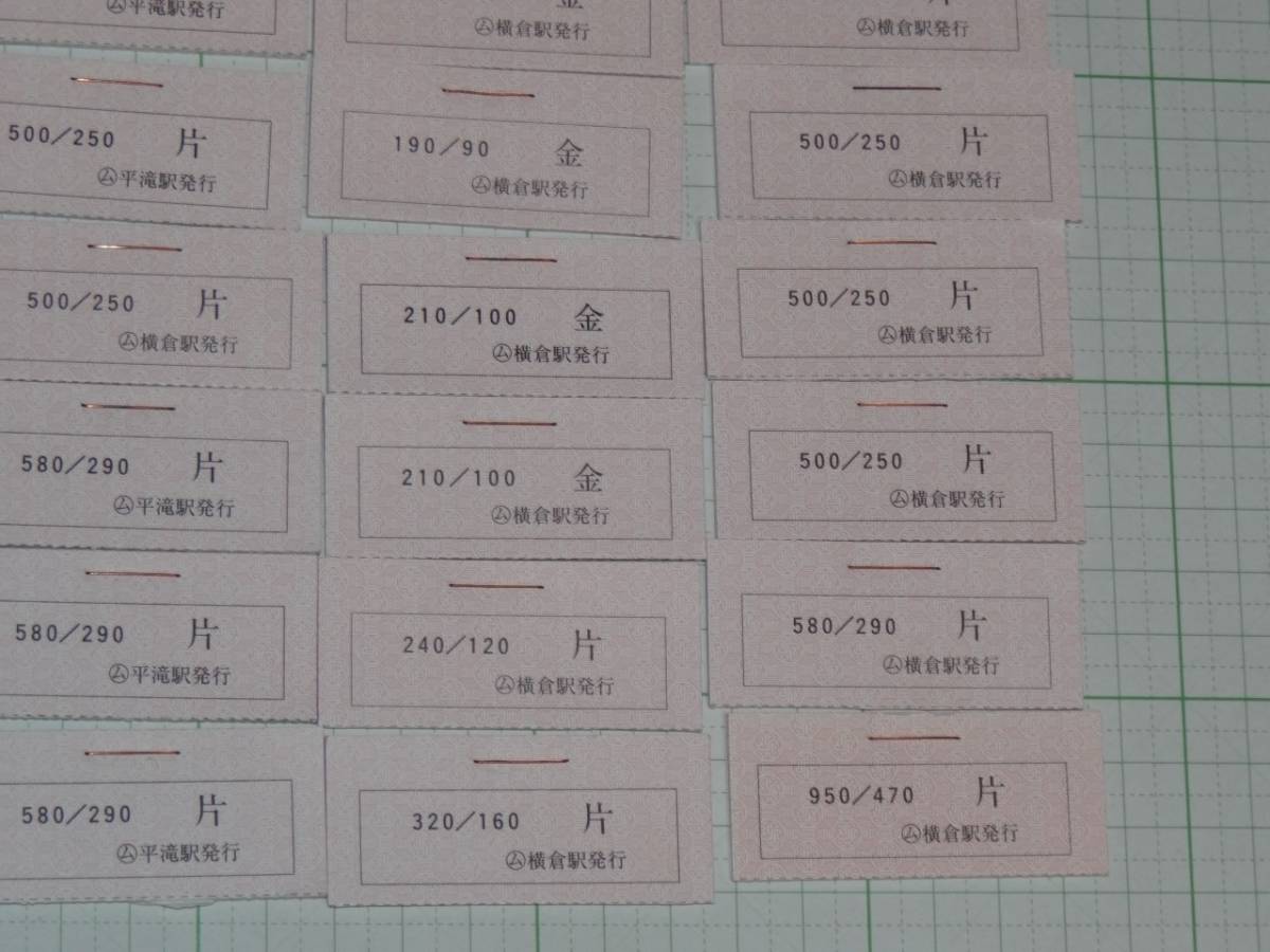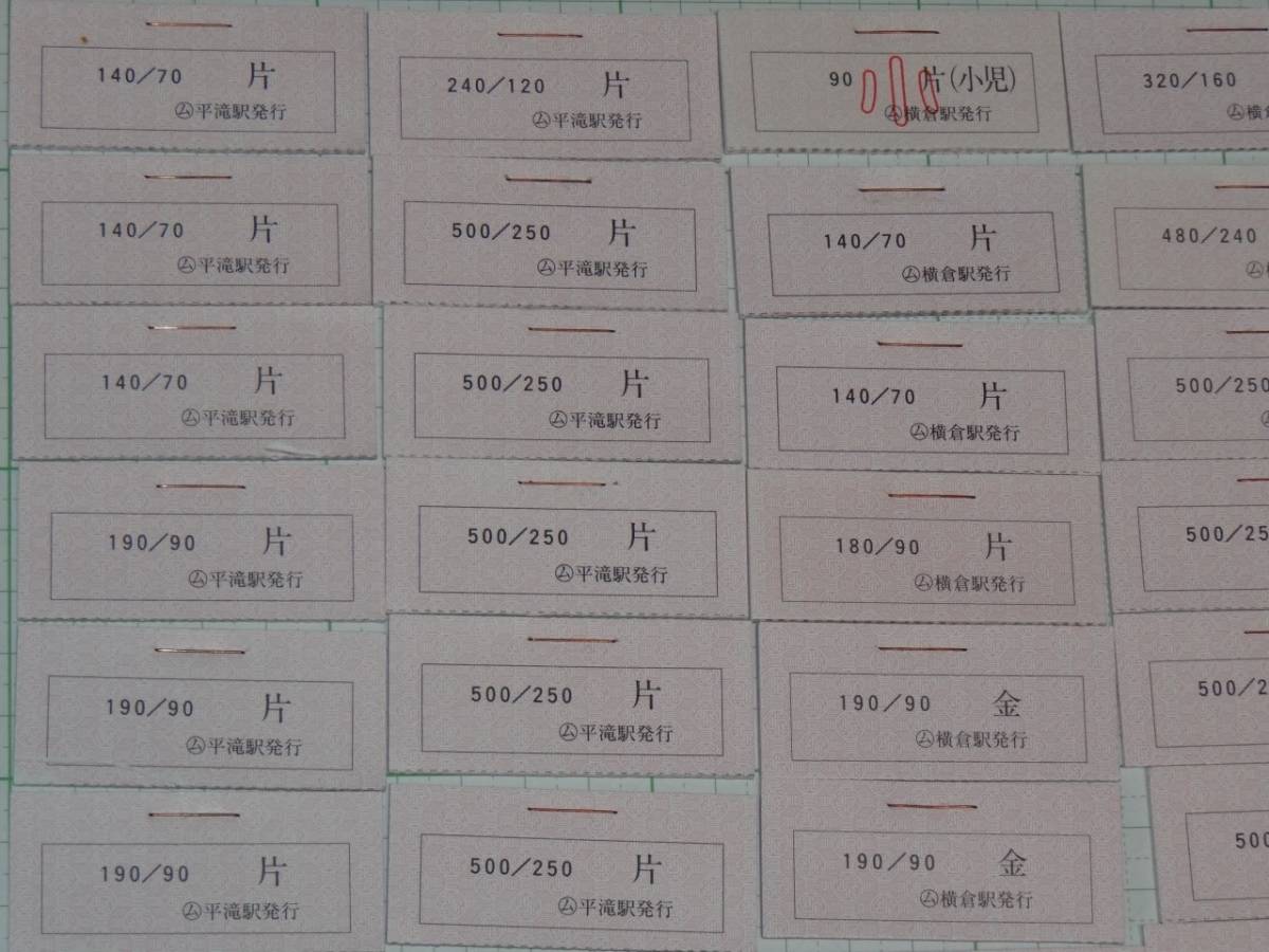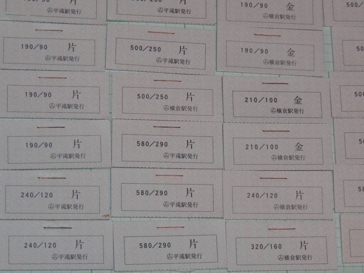 【JR東日本】〇ム 平滝駅/〇ム 横倉駅 手売り用乗車券 ミミ43冊 430枚 ホチキス止め