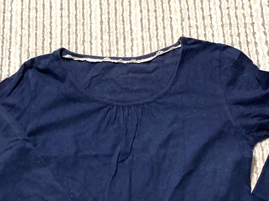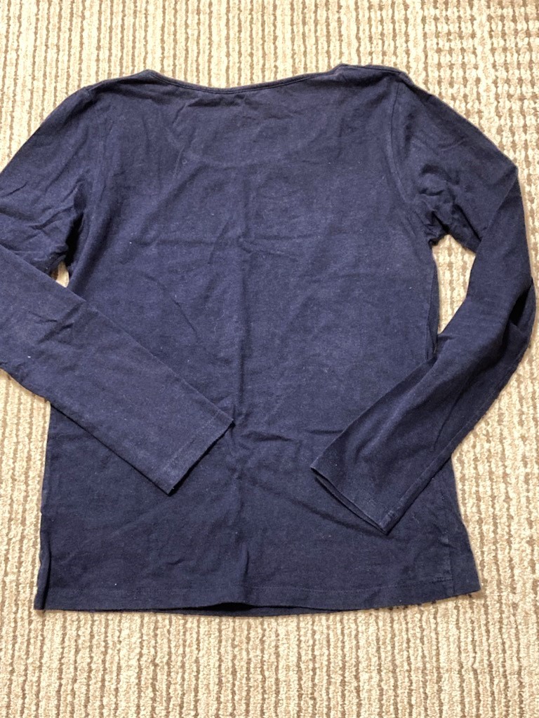数年前に、アースミュージックアンドエコロジーで購入した、長袖カットソーです。 重ね着などにちょうど良かったので、インナーとして着ていました。 10回程度は着ています。 他にも似たような服を持っていたので、この数年はしまったままになっていました。 目立つキズ、汚れなどはないと思いますが、生地特有の軽い毛羽立ちなどは出来てしまっているので、着用感あると思います。 洗濯後にアイロンがけしてしまっていましたが、保管期間中にしわになってしまっています。 色はネイビーです。 サイズ:M 着丈約56cm 身幅約41cm 袖丈約55cm 素材:綿100% ※オークション終了後はお手数ですが落札者さまよりお手続きを開始してください。 急用などで2泊以上対応ができない場合は自己紹介欄に記載いたします。 |