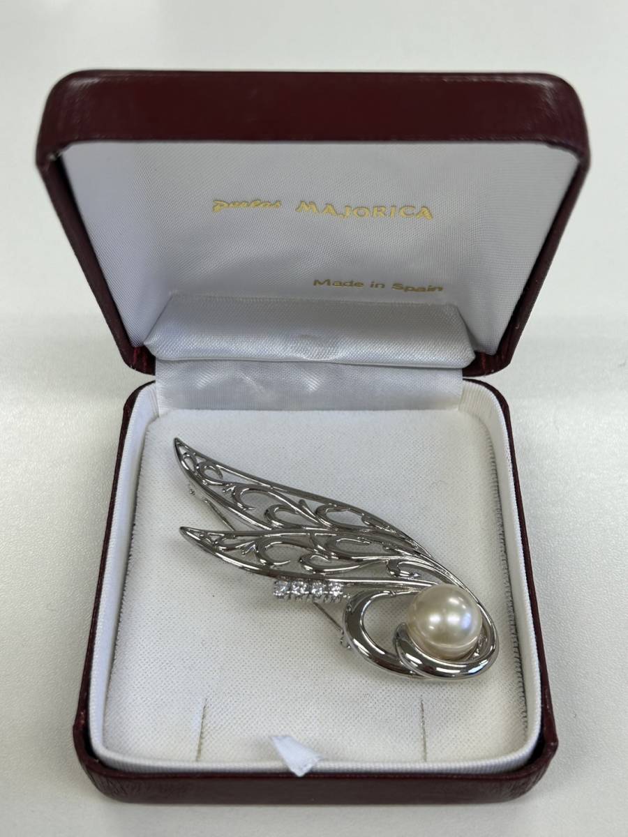 マジョリカパールブローチ Ag925 総重量 約14.7g 11.9mm玉 MAJORICA アクセサリー SV925 箱付き 真珠 | ||
