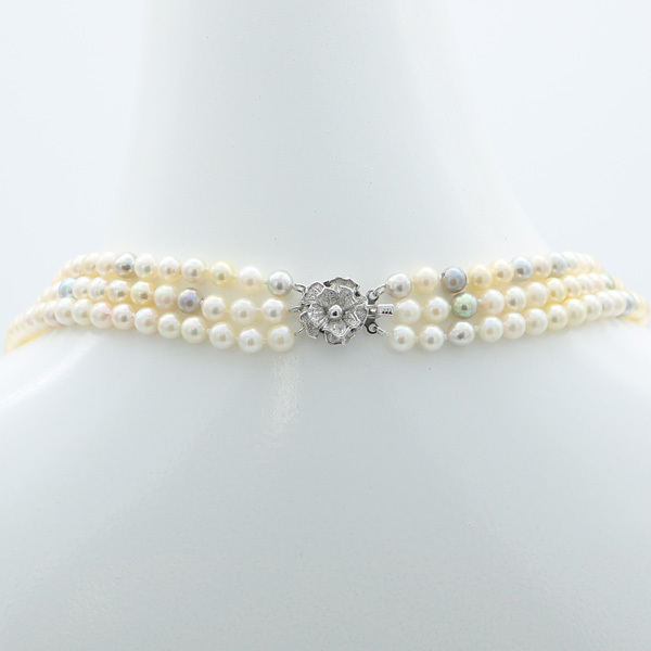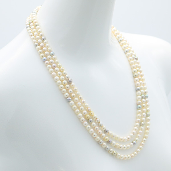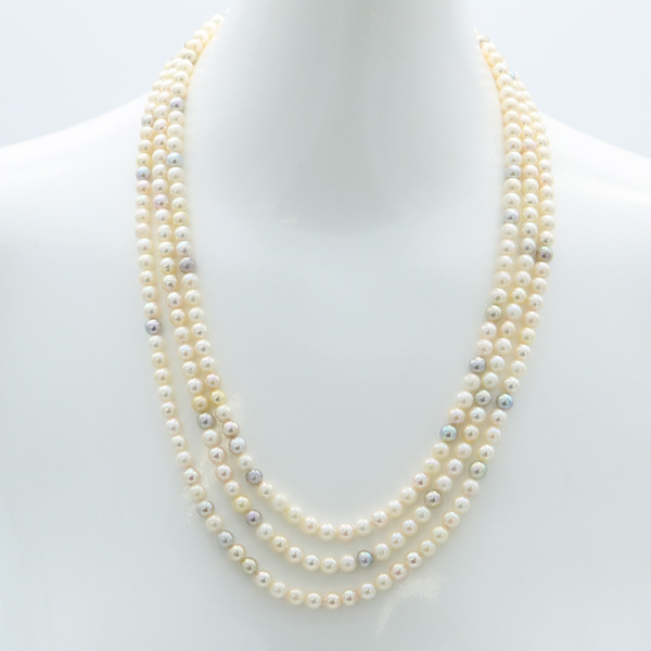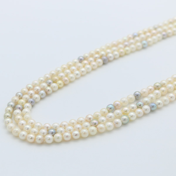 あこや真珠5.5mm-6mm4本分マルチカラー3連ロングネックレスです。 |