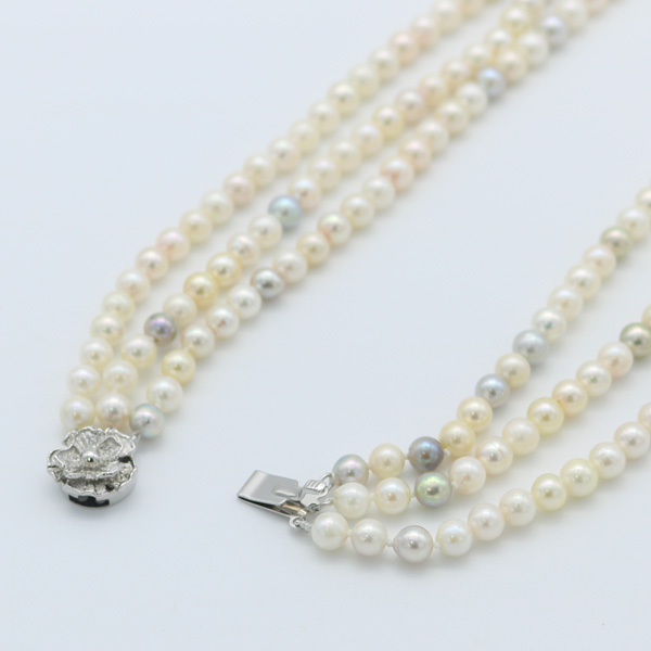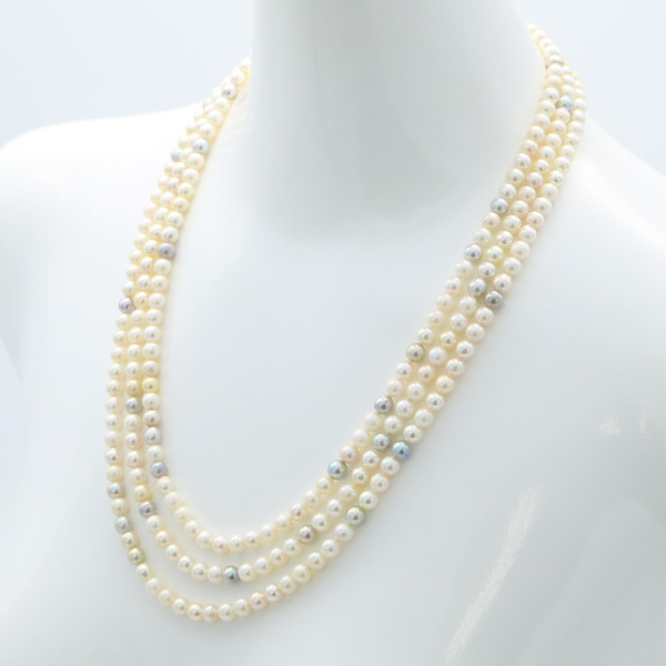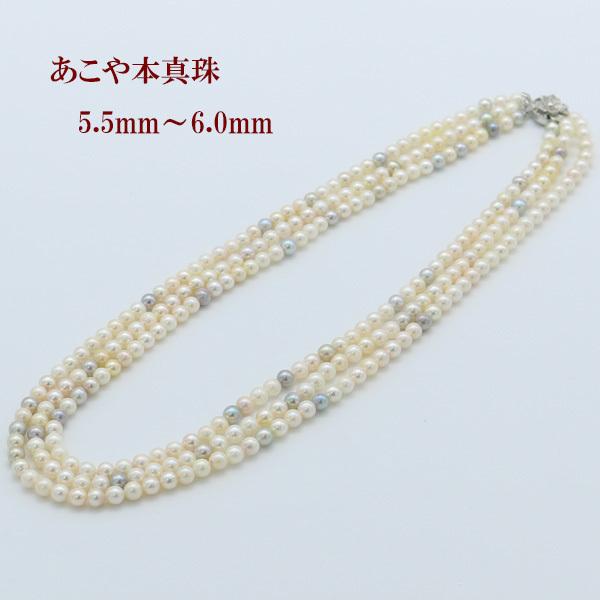 真珠 パール ネックレス あこや真珠 5.5mm-6mm 3連 マルチカラー ロング シルバー アコヤ本真珠 カジュアル |
