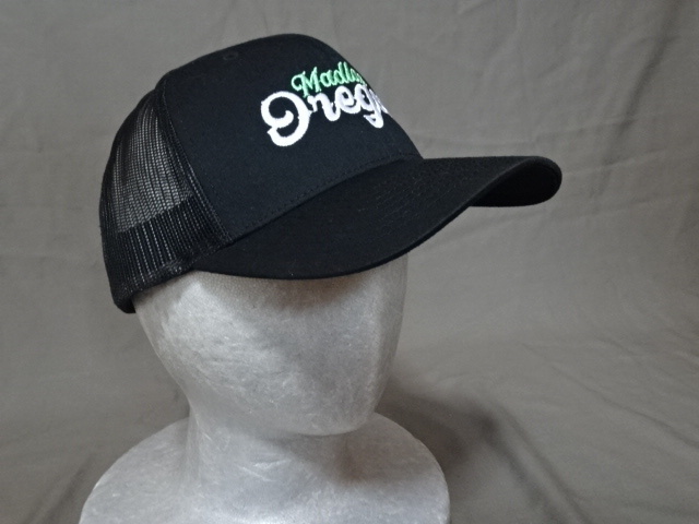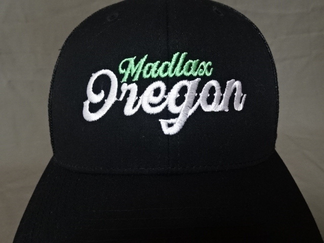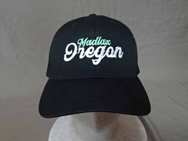 激レア USA購入 オレゴン州ポートランド ラクロスチーム 【MADLAX OREGON】 ロゴ刺繍入り メッシュキャップ 黒 中古良品