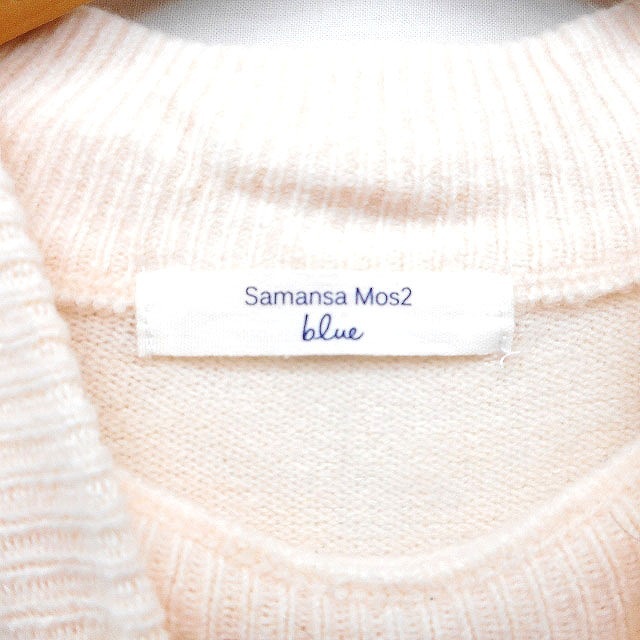 サマンサモスモス SM2 ブルー blue セーター ニット 無地 シンプル 切替リブ ロングテール モックネック 長袖 F ベージュ /HT27 レディース