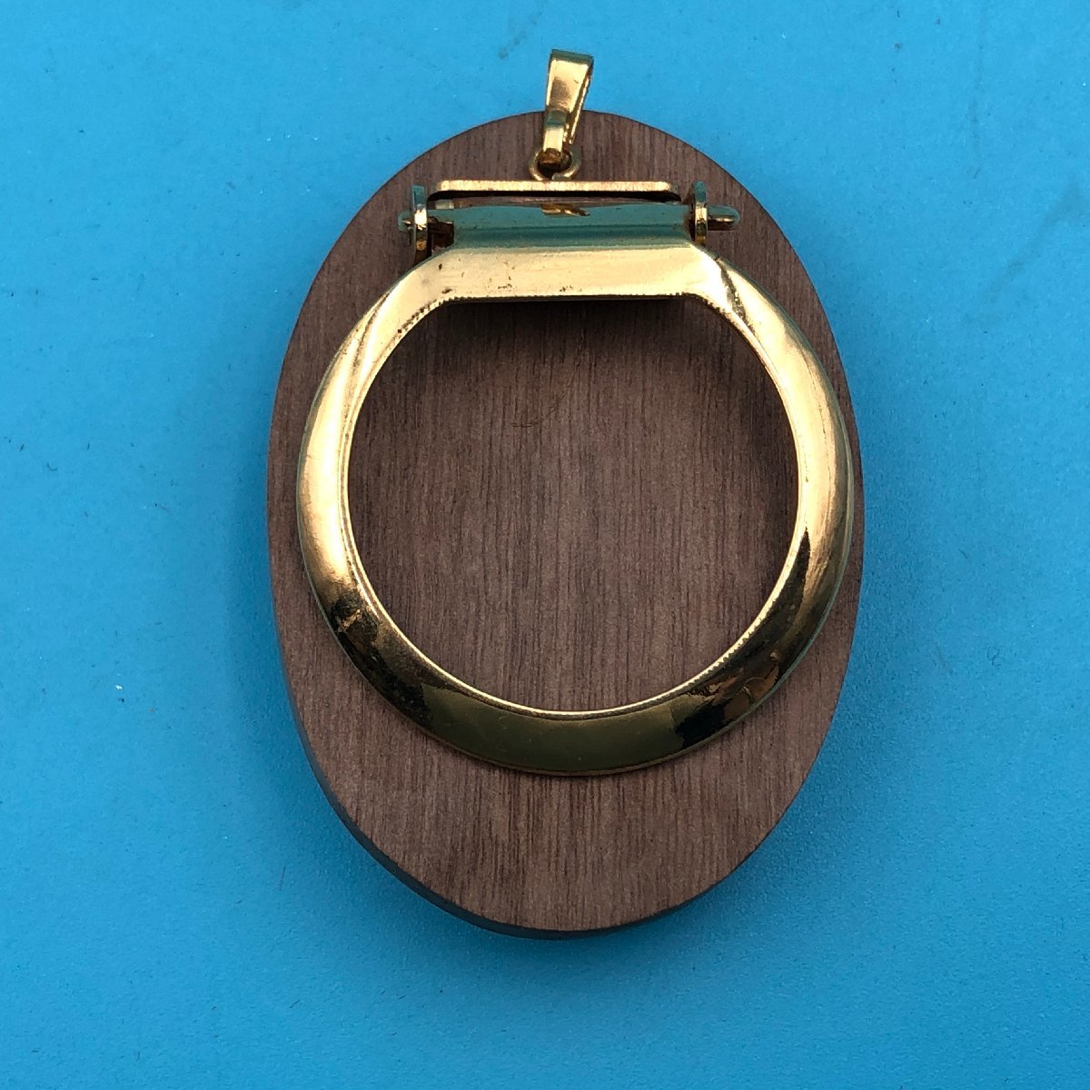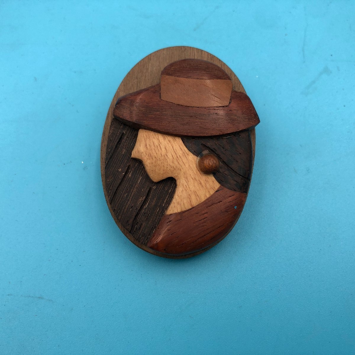 【A8660O168】木製 ペンダントトップ スカーフ止め 2way 寄木細工 帽子を被った女性 オシャレ 服飾小物 レディースアクセサリー