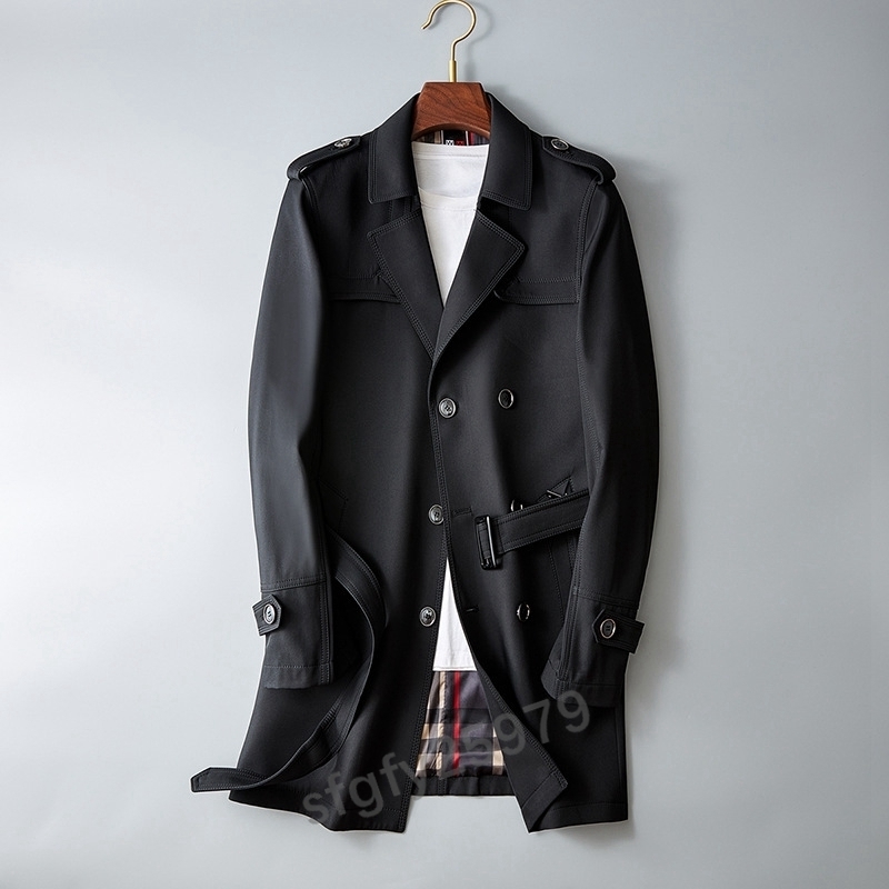 F637☆新品春秋メンズ ビジネスコートカジュアル コートチェスターコートロング丈 アウター スプリングコート おしゃれ ブラック~4XL