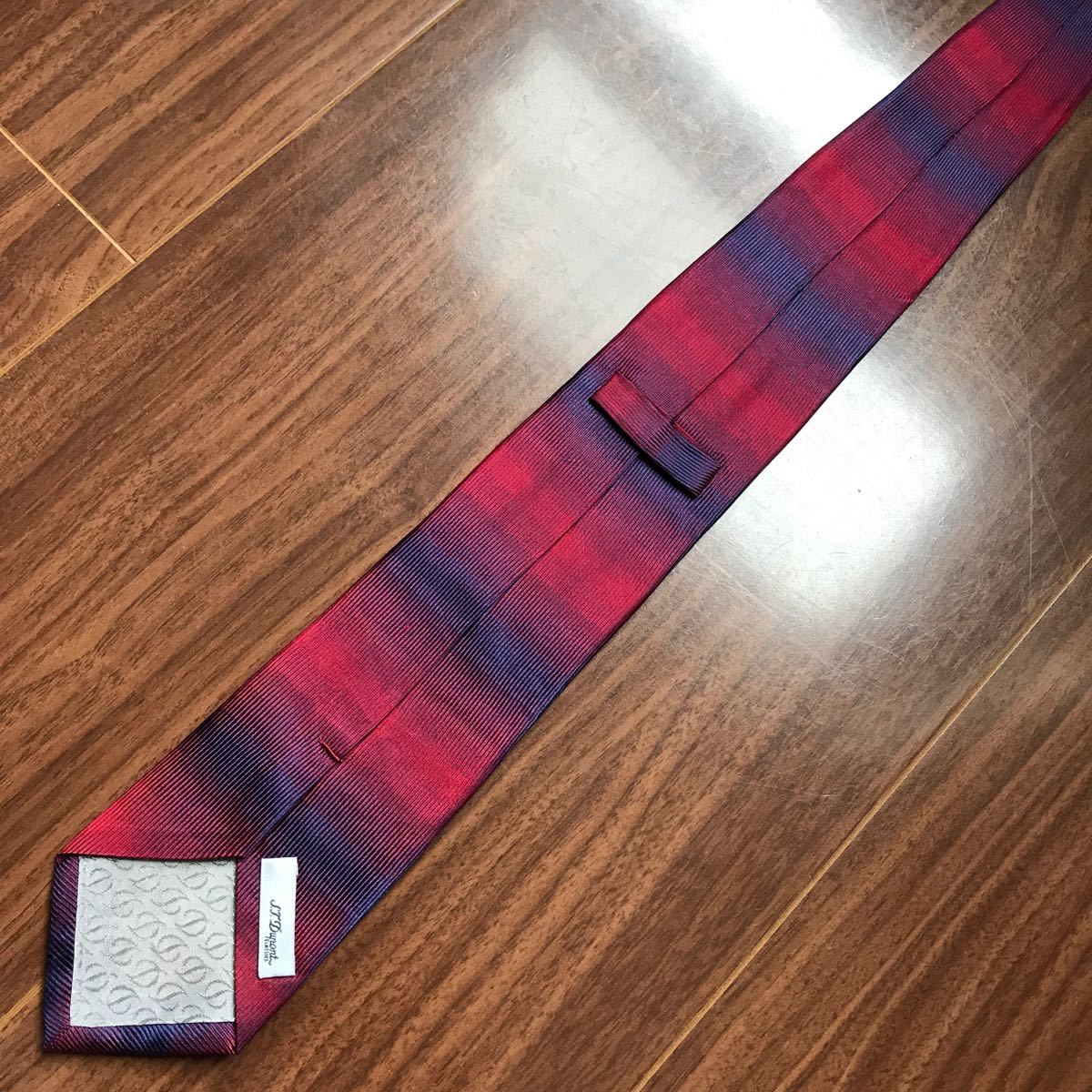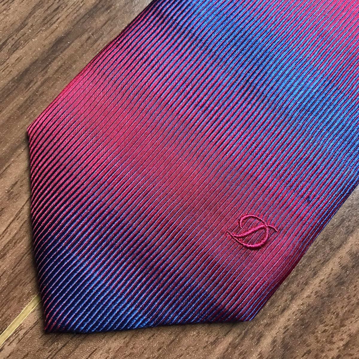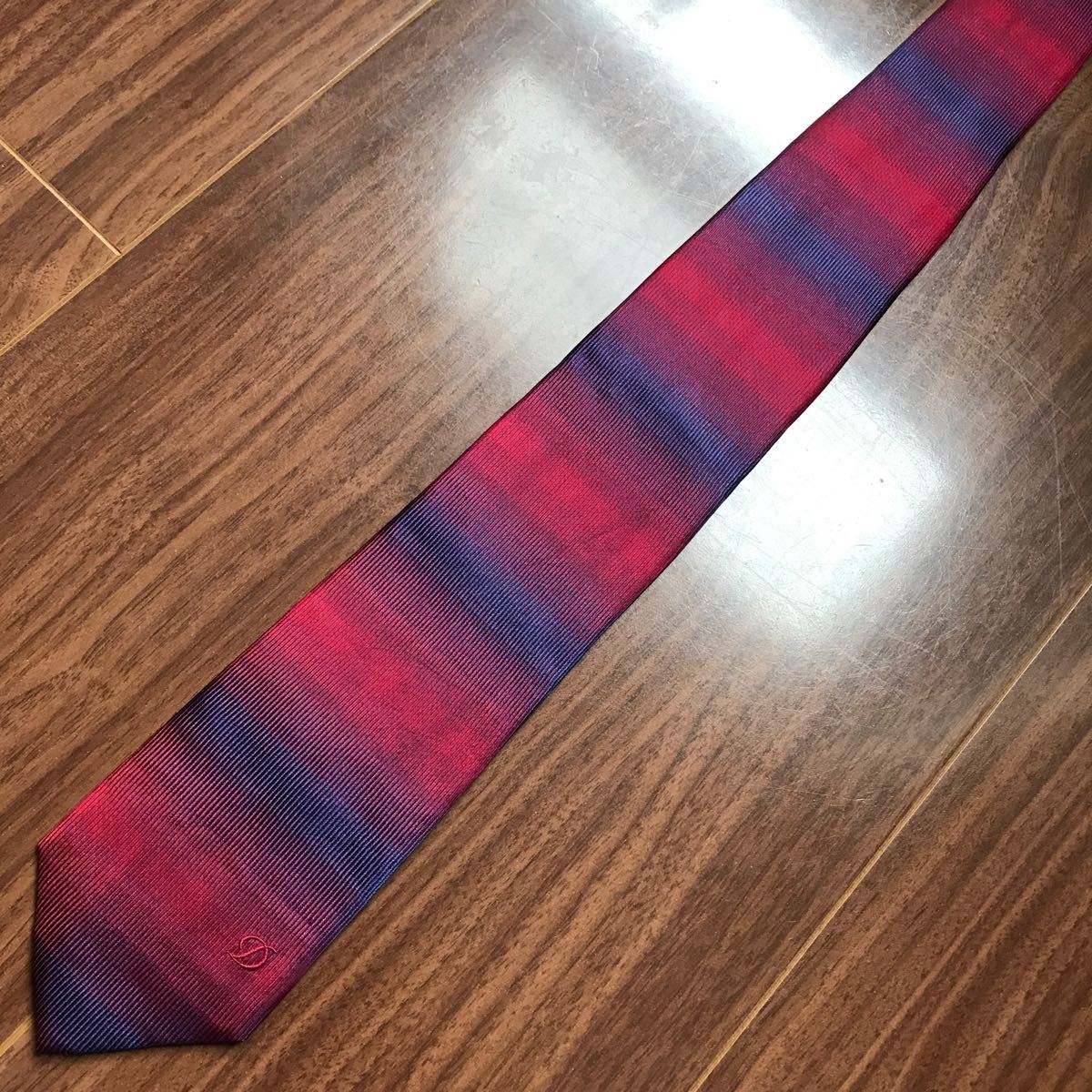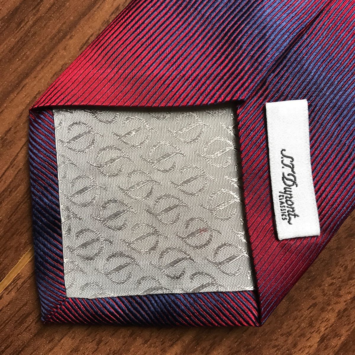 S.T.Dupont デュポン ネクタイ ネイビー ワインレッド ボーダー