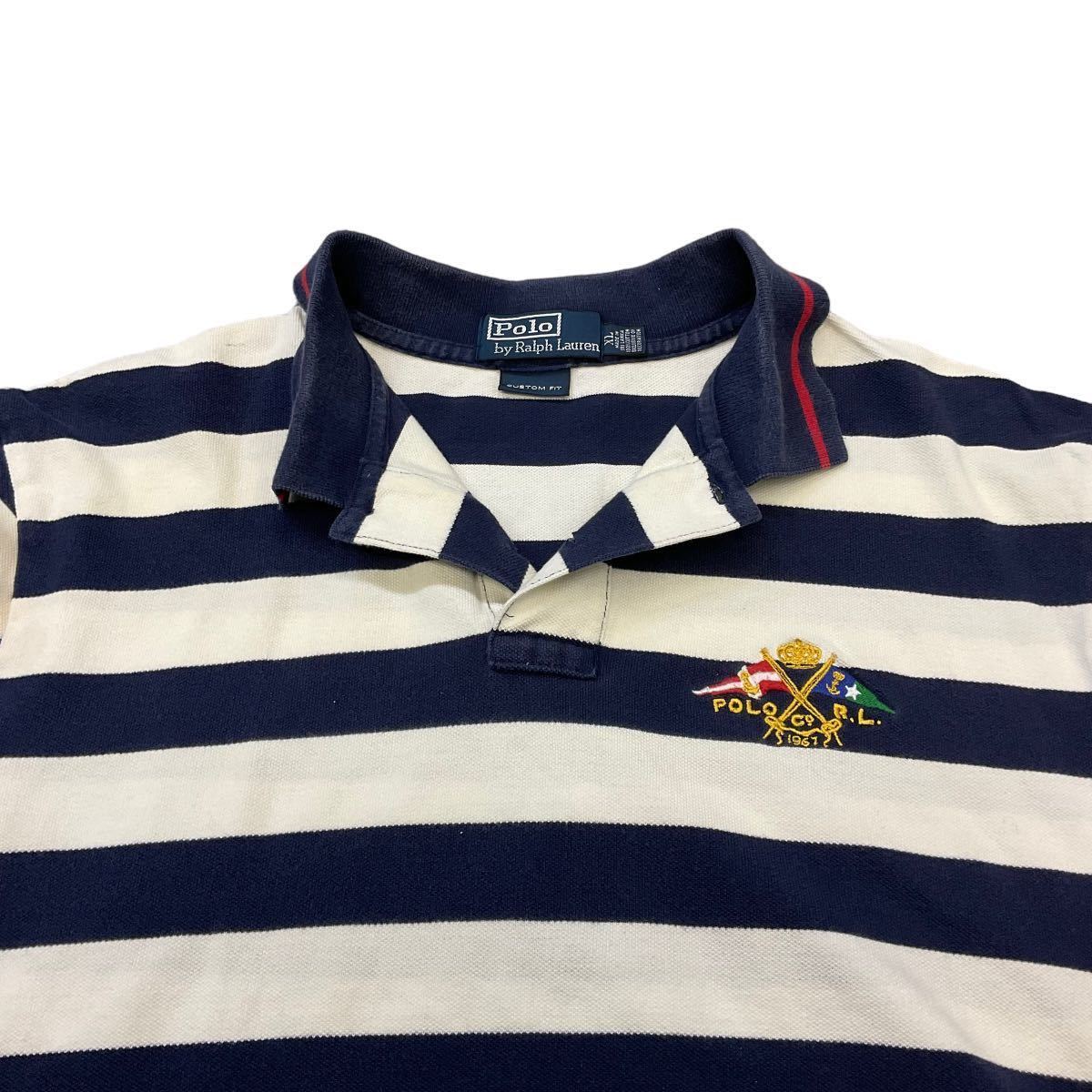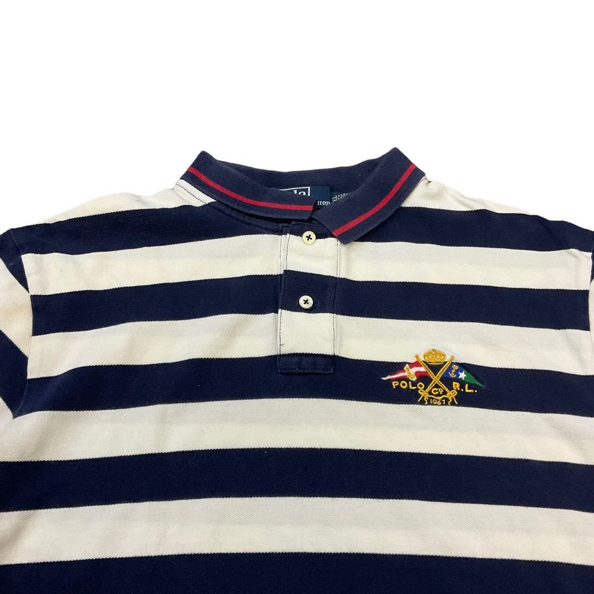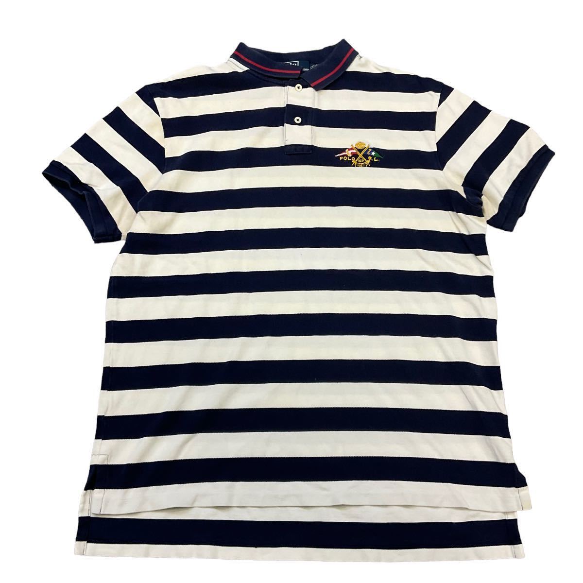 90s Polo by Ralph Lauren 半袖 ポロシャツ XL ボーダー ポニー ロゴ 刺繍 ワッペン Tシャツ ポロ バイ ラルフローレン ヴィンテージ