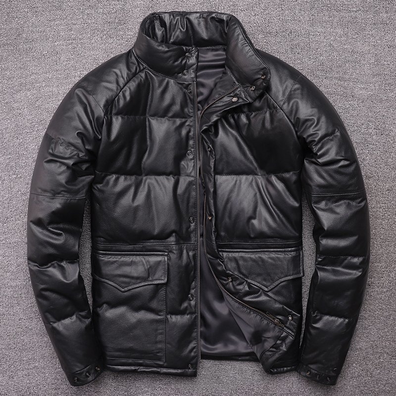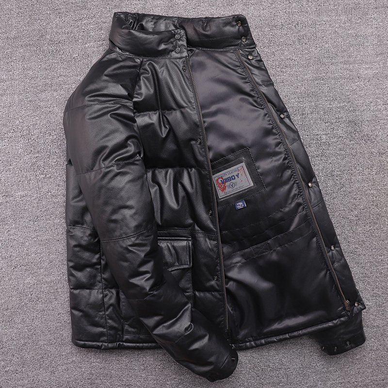 レザージャケット 上品 本革 牛革 高級 ダウンジャケット 暖かい ライダースジャケット 革ジャン 秋冬 黒