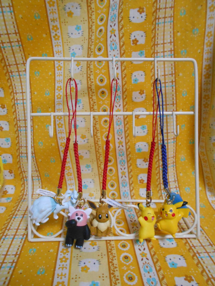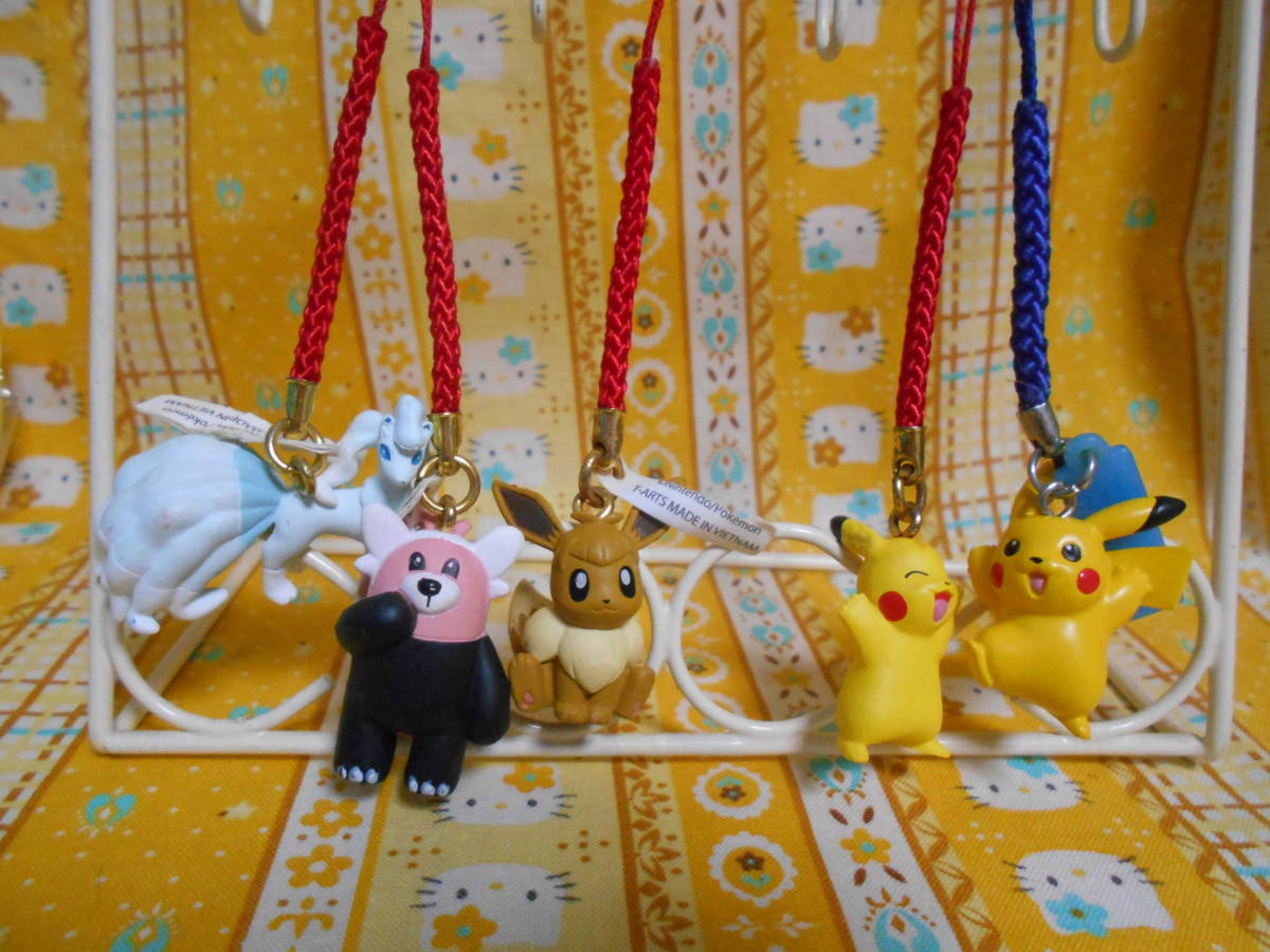 ♪ポケモン新品ミニすず鈴ペア根付ピカチュウ2種バンプレスト&根付ストラップ5種キュウコン&キテルグマ&イーブイ&ピカチュウ2種