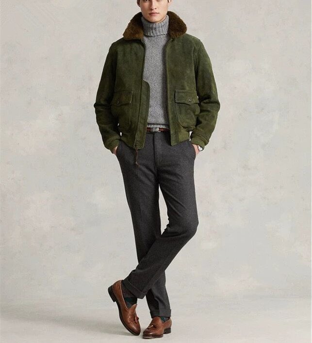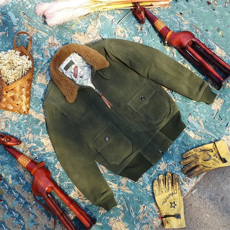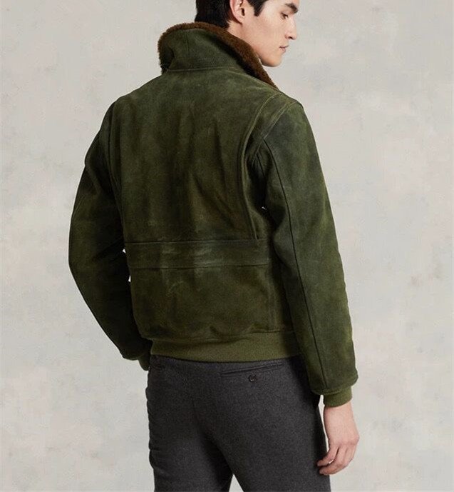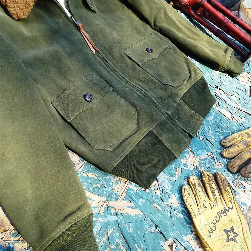 G9レザージャケット 上品 本革 牛革スエードジャケット ウール襟 ライダースジャケット  革ジャン S~4XLグリーン