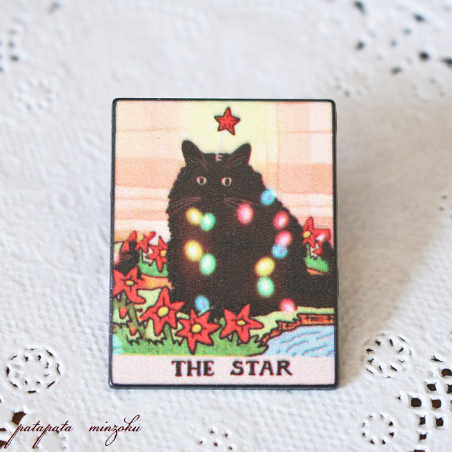 猫のピンバッジ タロットカード 星 THE STAR 猫 バッジ ネコ ねこ 小物 雑貨 ピンズ ブローチ