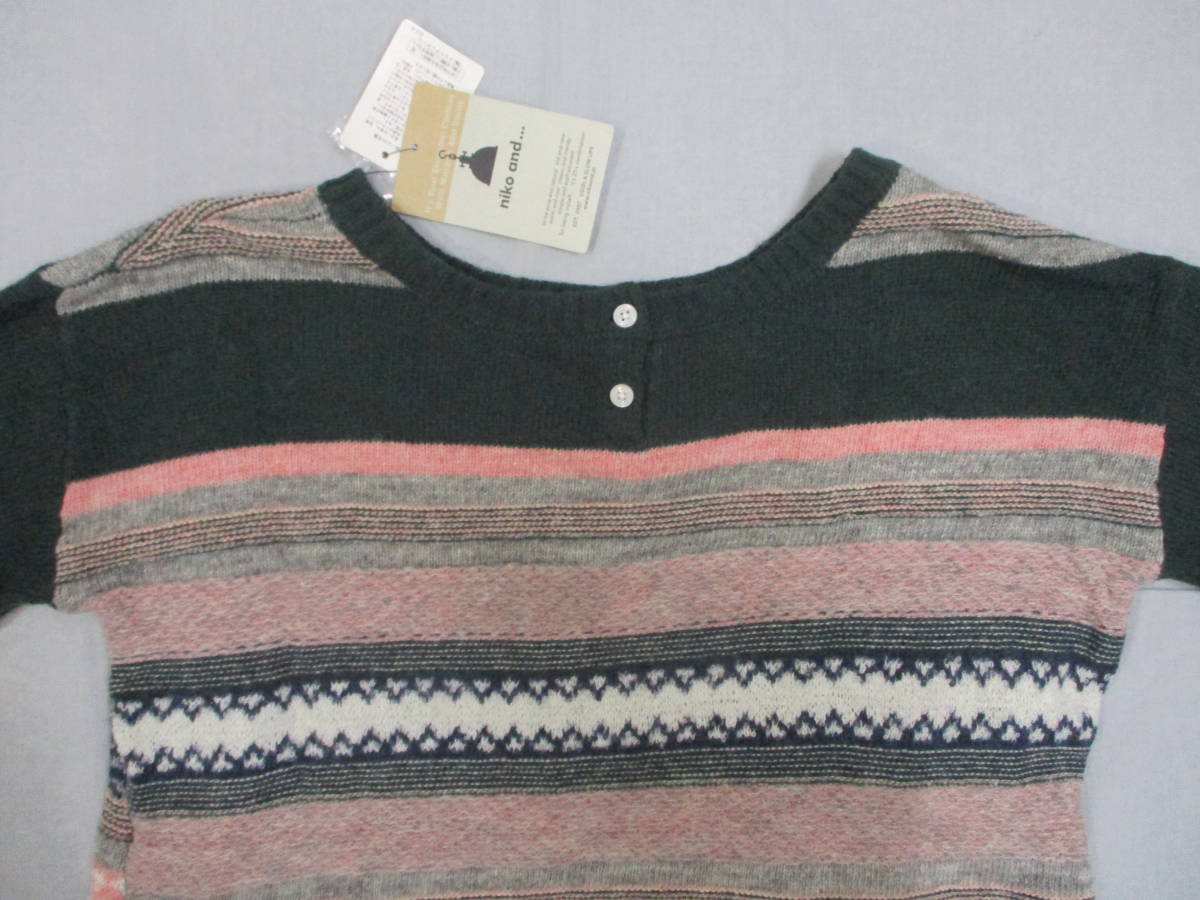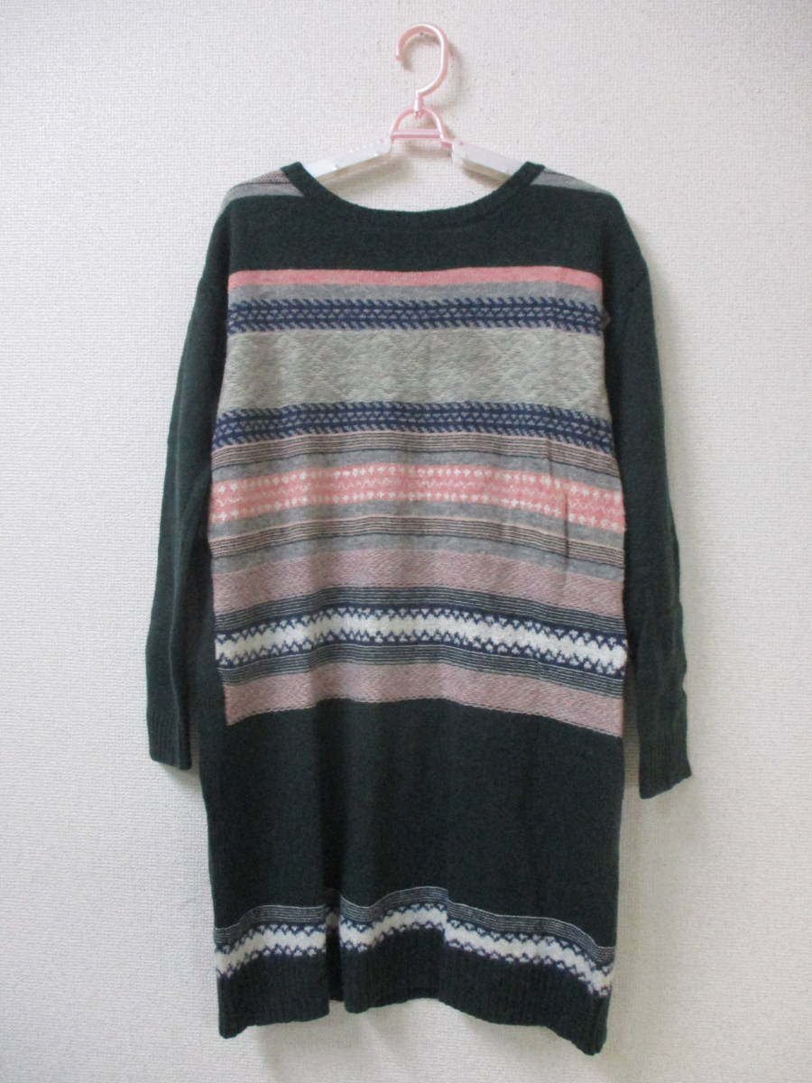 ☆商品名☆   niko and...  レディース  セーター  グリーン・ボーダーデザイン  ロング丈  Fサイズ  【商品タグ付き】