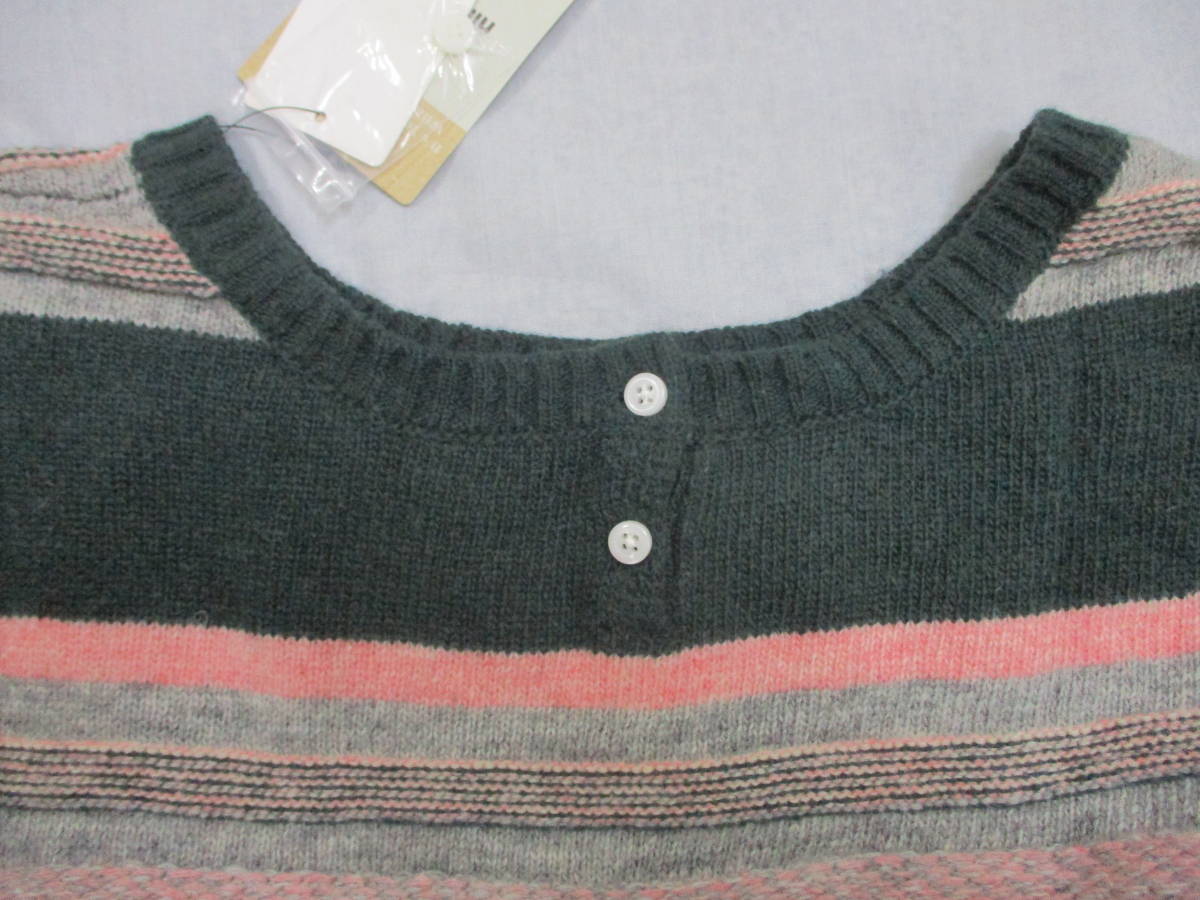 niko and... レディース セーター グリーン・ボーダーデザイン ロング丈 Fサイズ 【商品タグ付き】