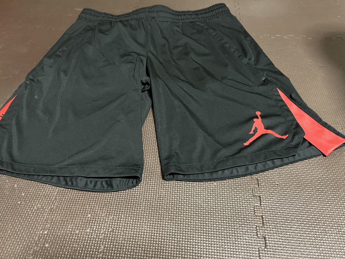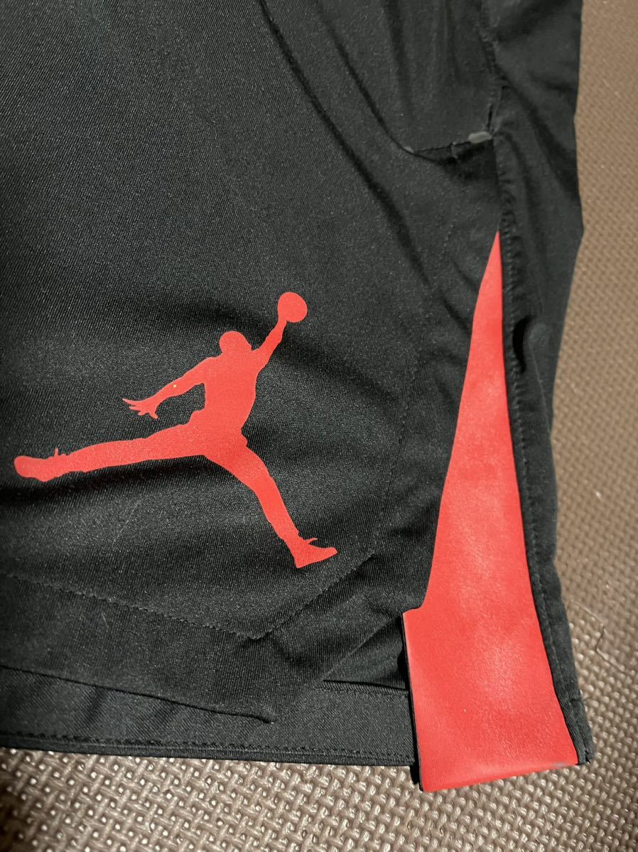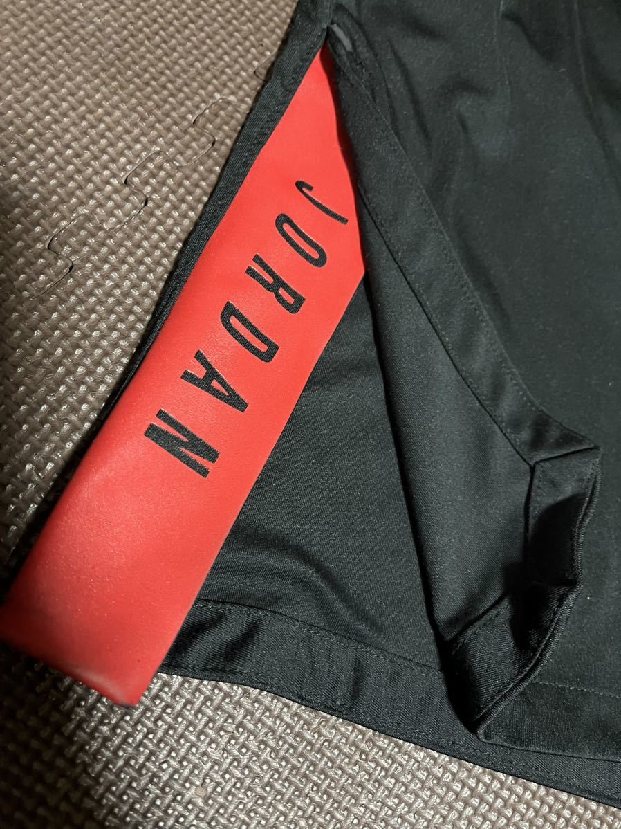 JORDANDRI-FIT黒、ロゴ、ライン赤ストレッチハーフパンツ
